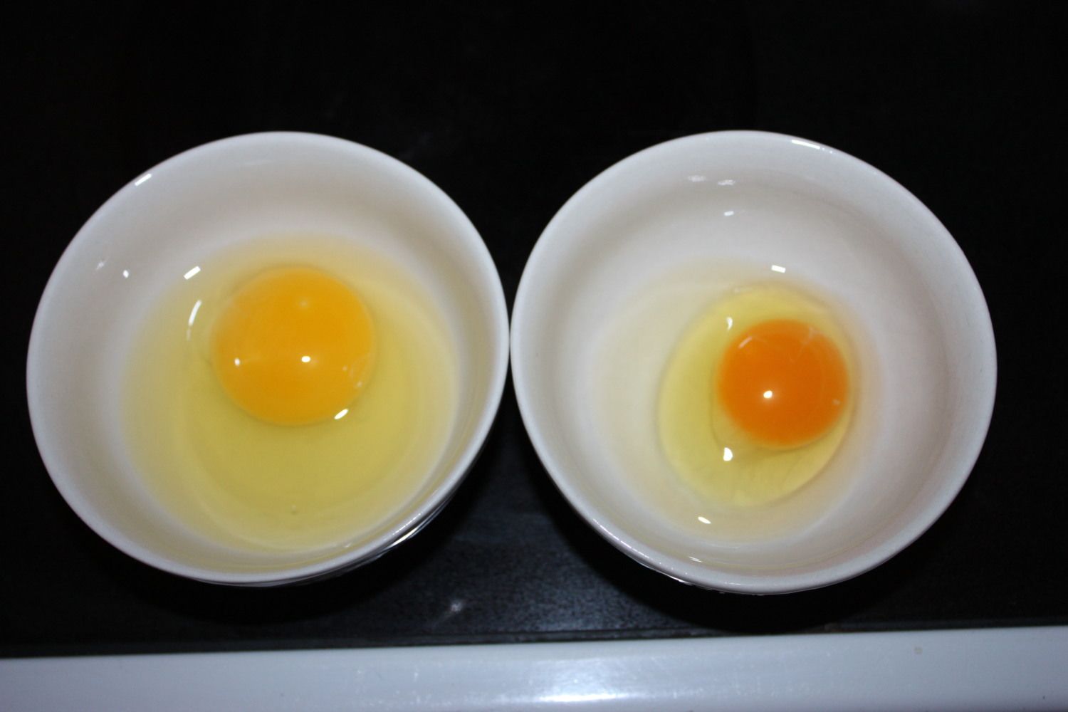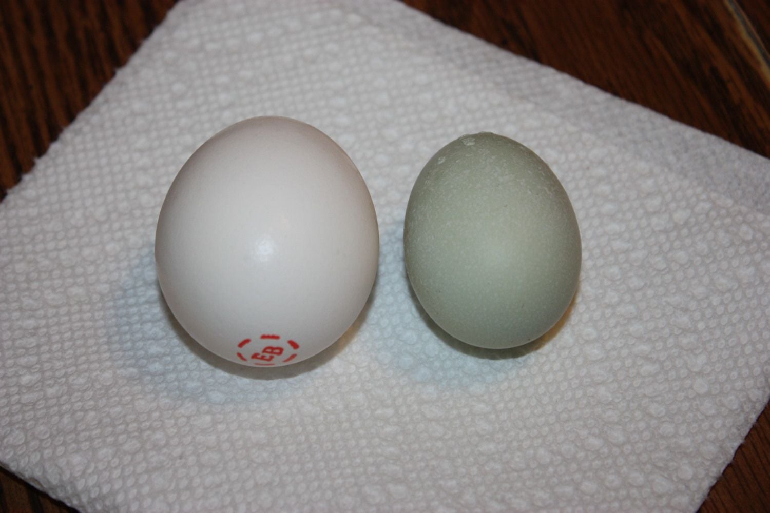 Another side by side with a store egg, to show the size difference, this one is also 1.2 ounces. The shell is strong on this one too.