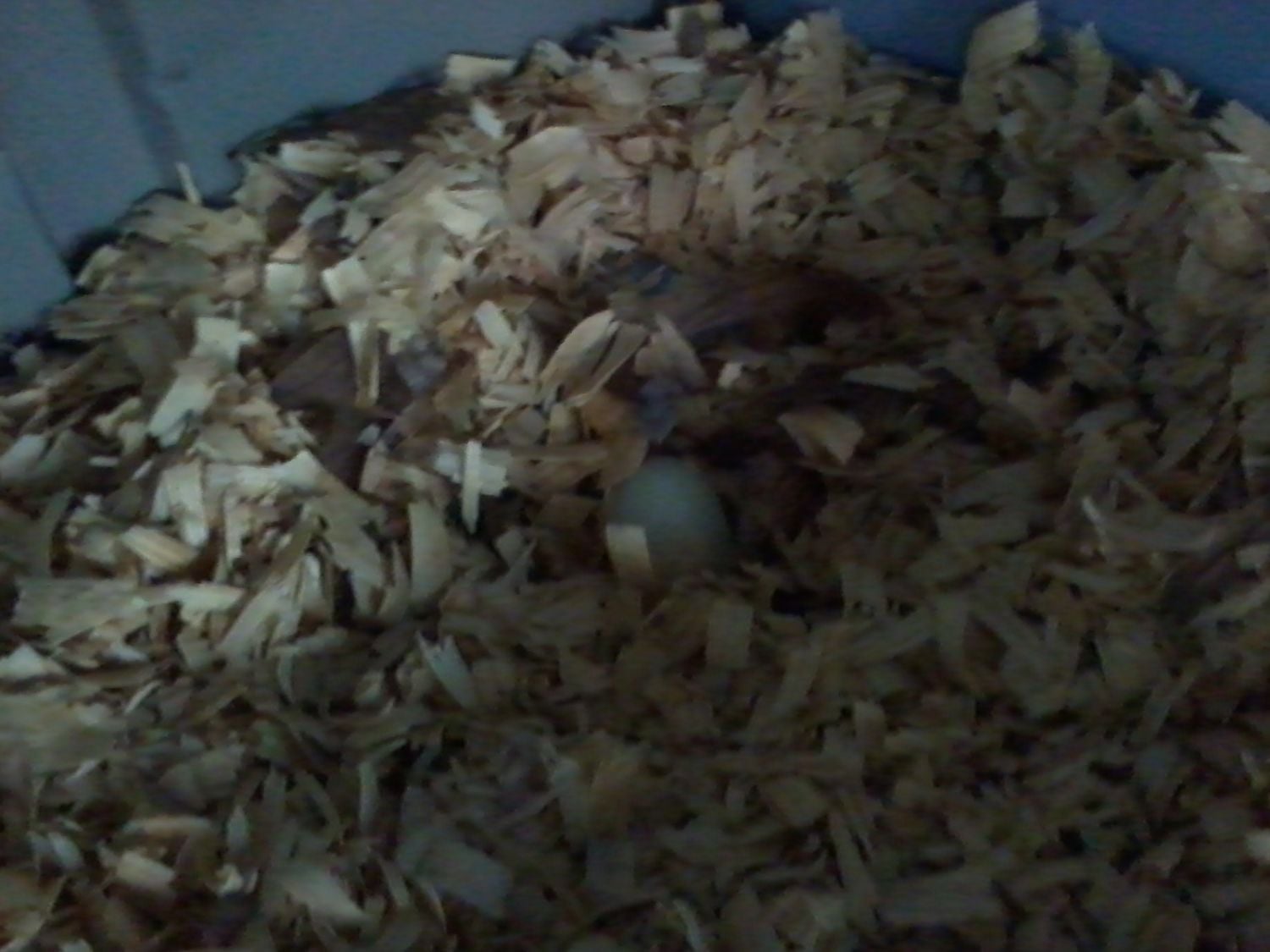Also, I went back out to fix up the nest boxes for Snow and all the other chickens. I added a couple clean old t-shirts of my husbands to a couple of the nest boxes to maybe encourage laying in the proper place. When I went in the coop I saw this in the same corner where Snow laid her 1st egg. I was wondering how Snow could possibly lay 3 eggs in 2 days and it was not there at 7 am. I thought maybe it had a green tint.