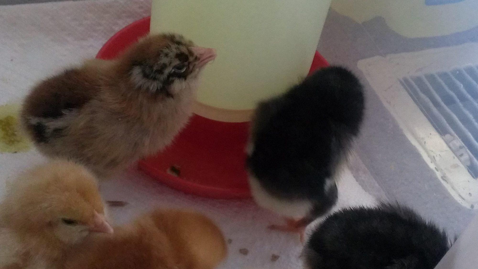 Yay for the chicks! I hope that they do okay!They all seem to be doing much better, wetted there beaks again and now most are eating and drinking. I have a lil polish that seems more weak than rest. Might have to run to the store and see about baby vitamins. It's closer than the local feed store which is 10 miles away