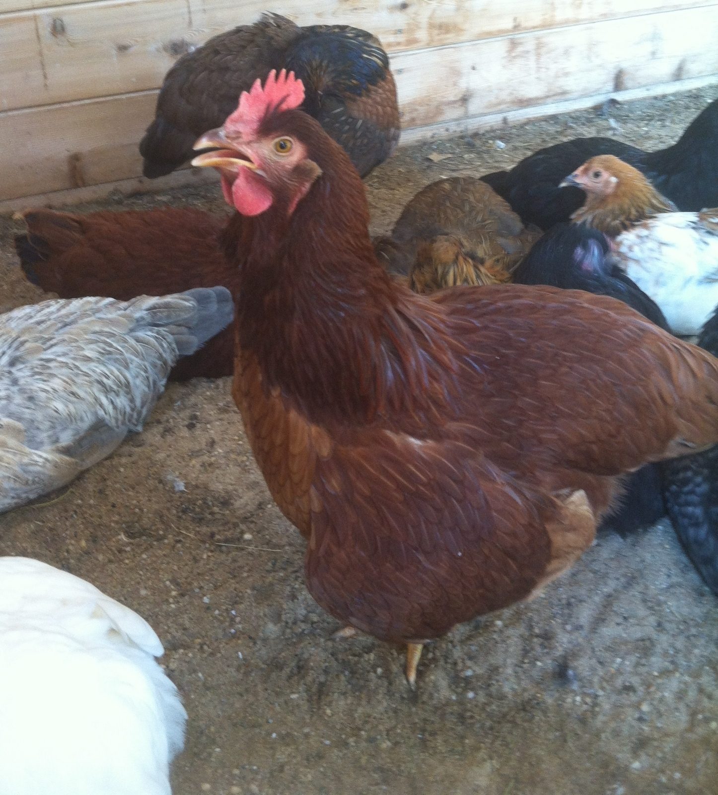 Here's Scarlett after she laid it... I thought Big Red would be the first because her comb/wattles are bigger and redder than
