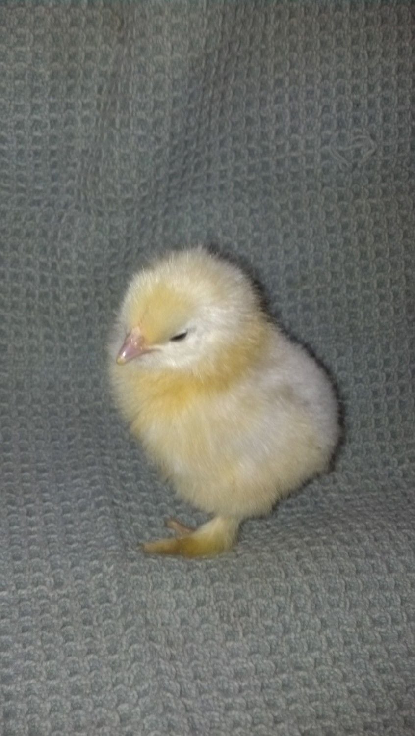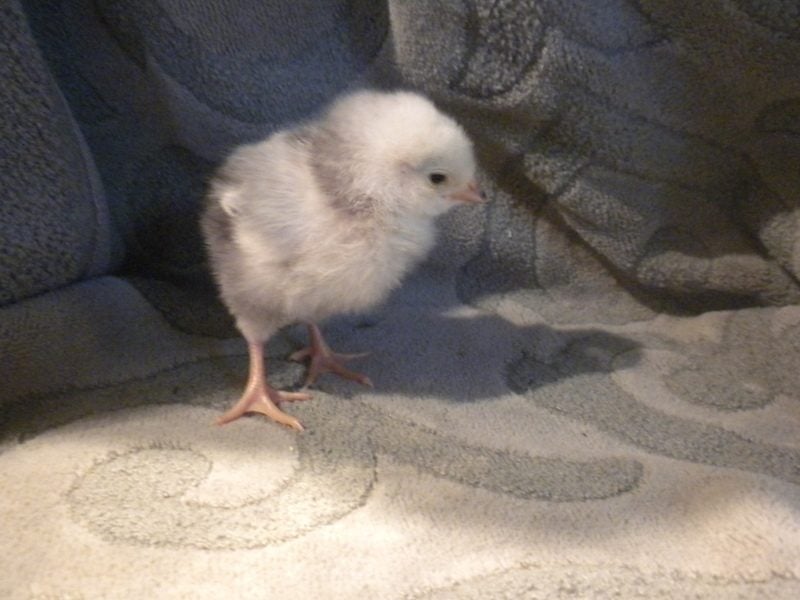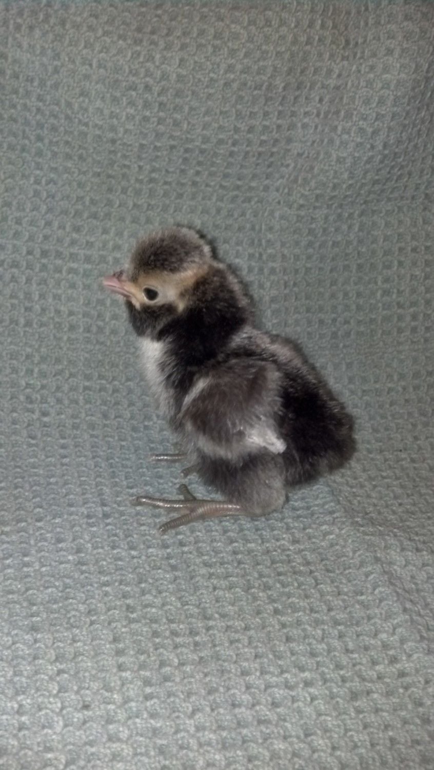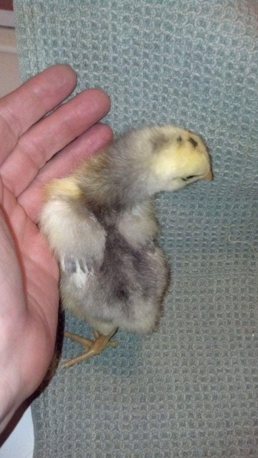 Hm, no beardy face... It almost has to be a different breed, not an Orpington. I can't imagine hidden genetics throwing that many feathers on the feet of a bird whose parents (we can assume) are clean-legged. Guess we'll have to wait and find out as it grows.