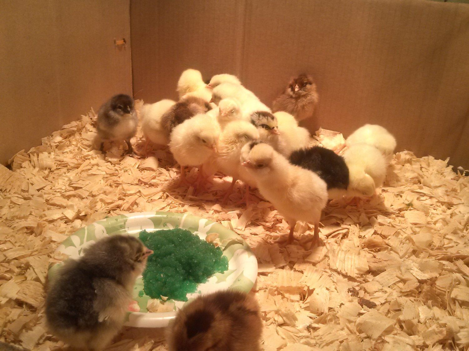 All arrived healthy and chirping, and got here MUCH earlier than we expected. We got the notice yesterday that they shipped (about 4:45 pm EST), and her postman called about 11:15 am EST this morning to let her know that he was on her doorstep with a chirping box. My friend and I were VERY upset with our post office because we thought they would hold the box there and call us to come pick it up. We had even called on Friday to confirm that. Fortunately, she is good friends with her postman and had let him know they would be coming as well. He made a special trip out to her place. We are so glad the babies did not have to ride in the truck all day!