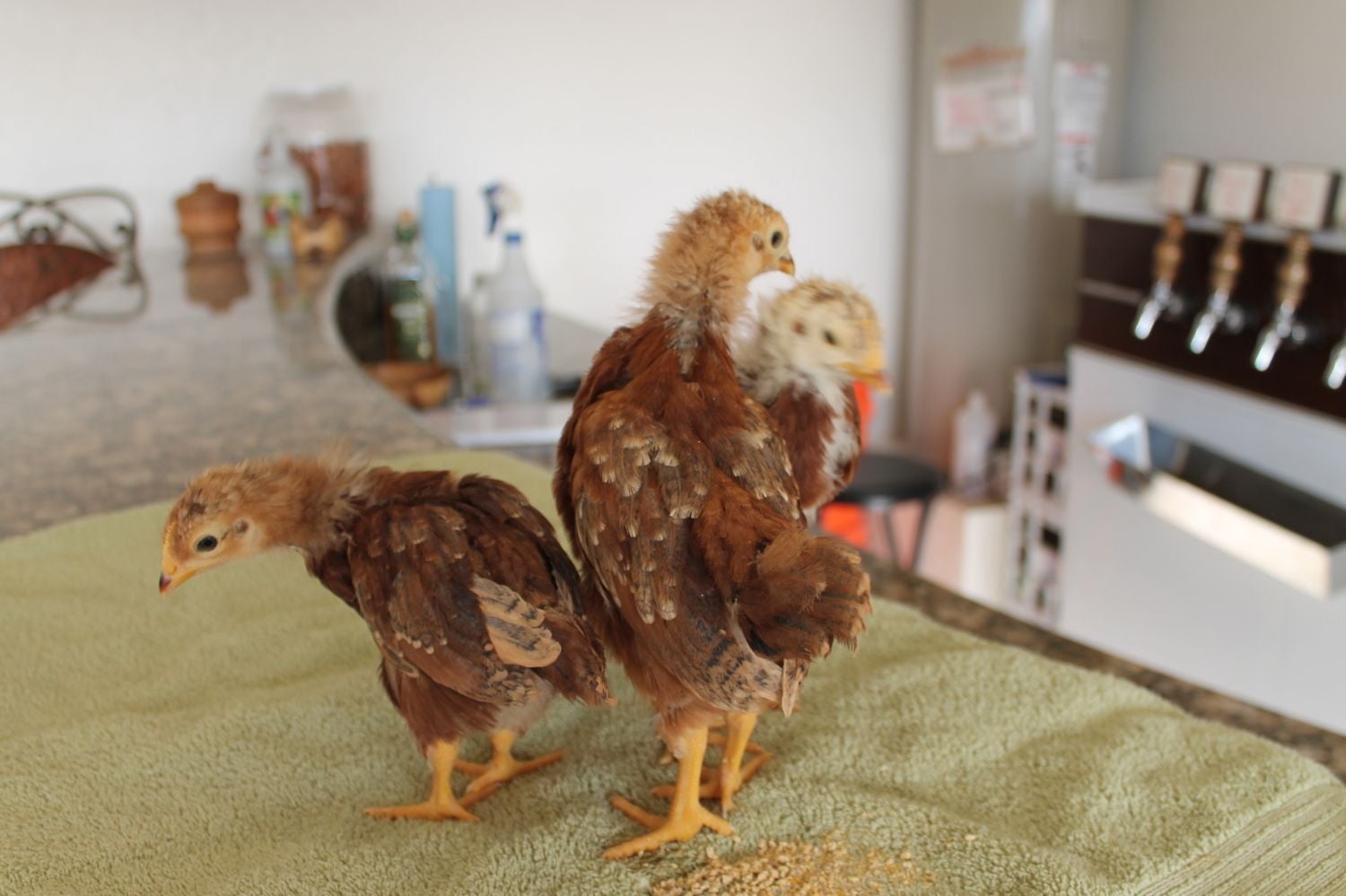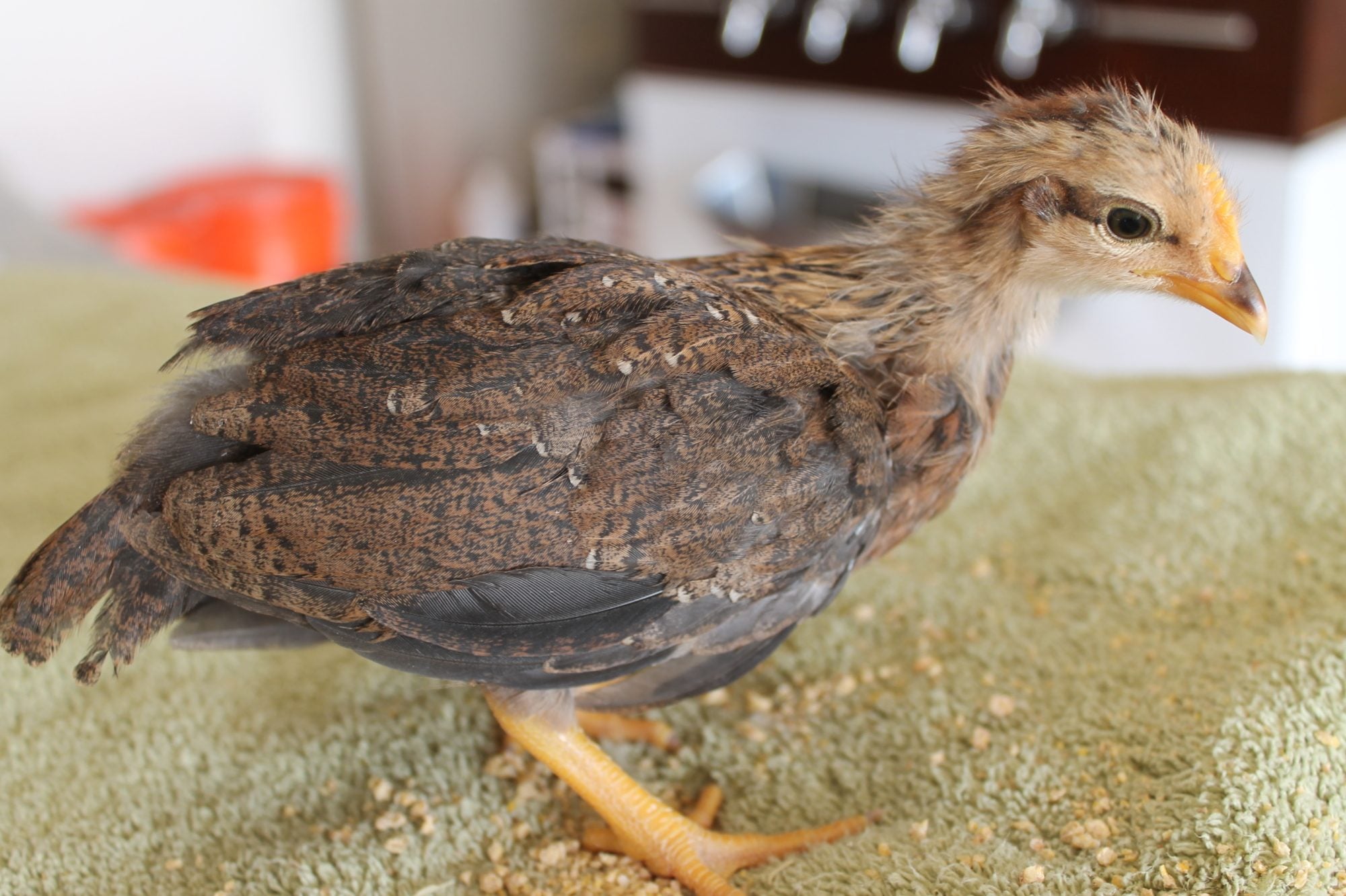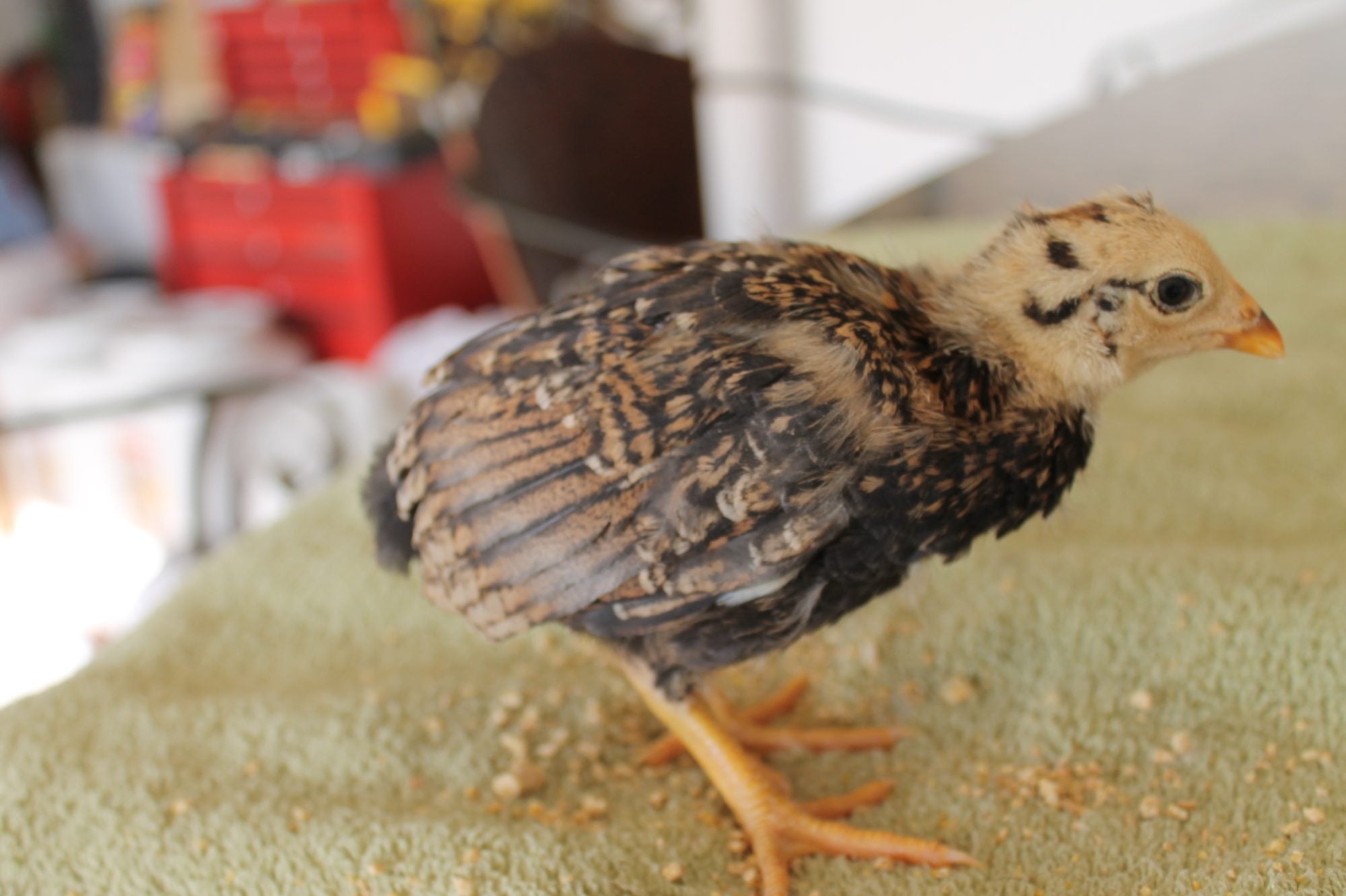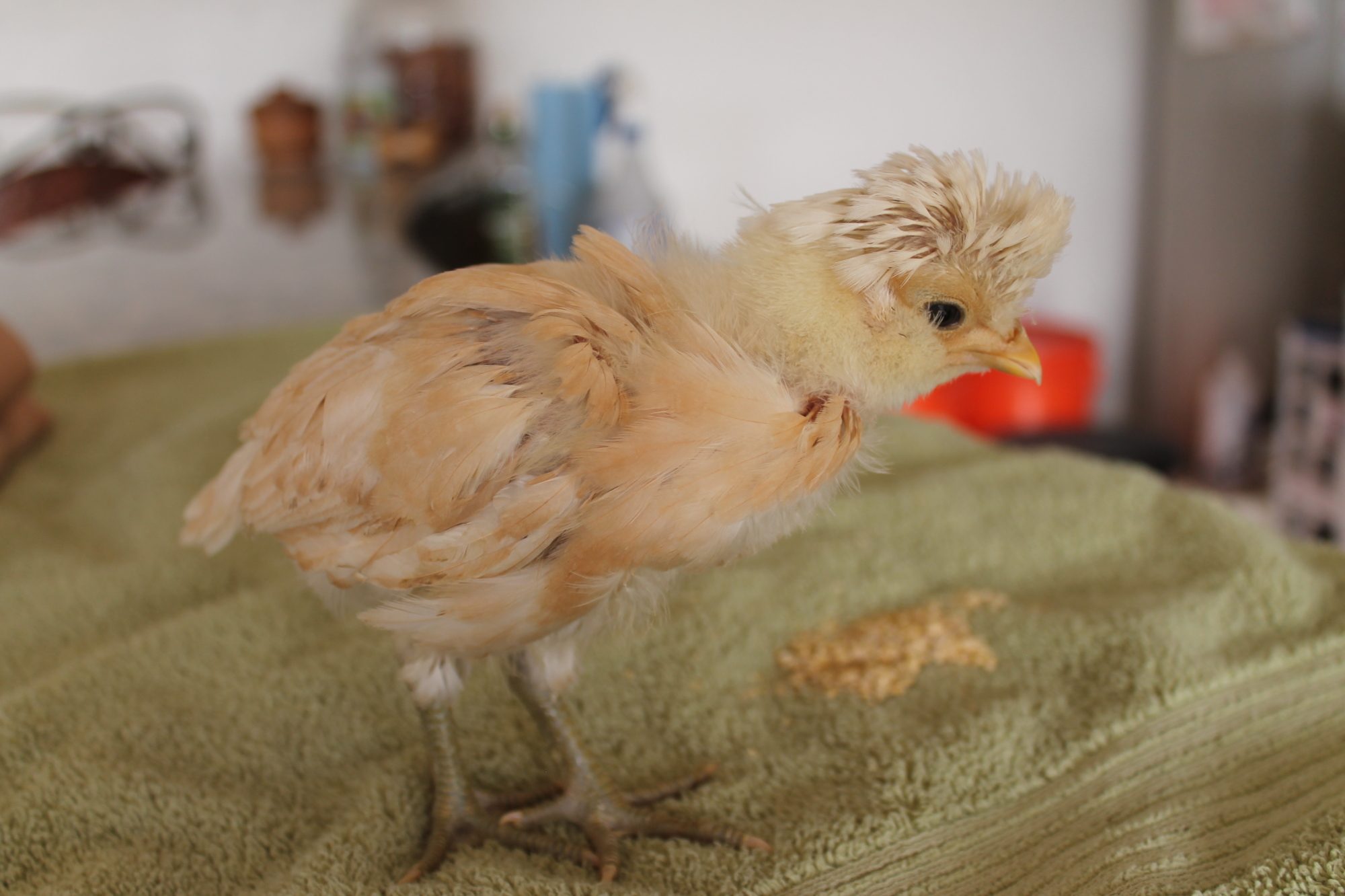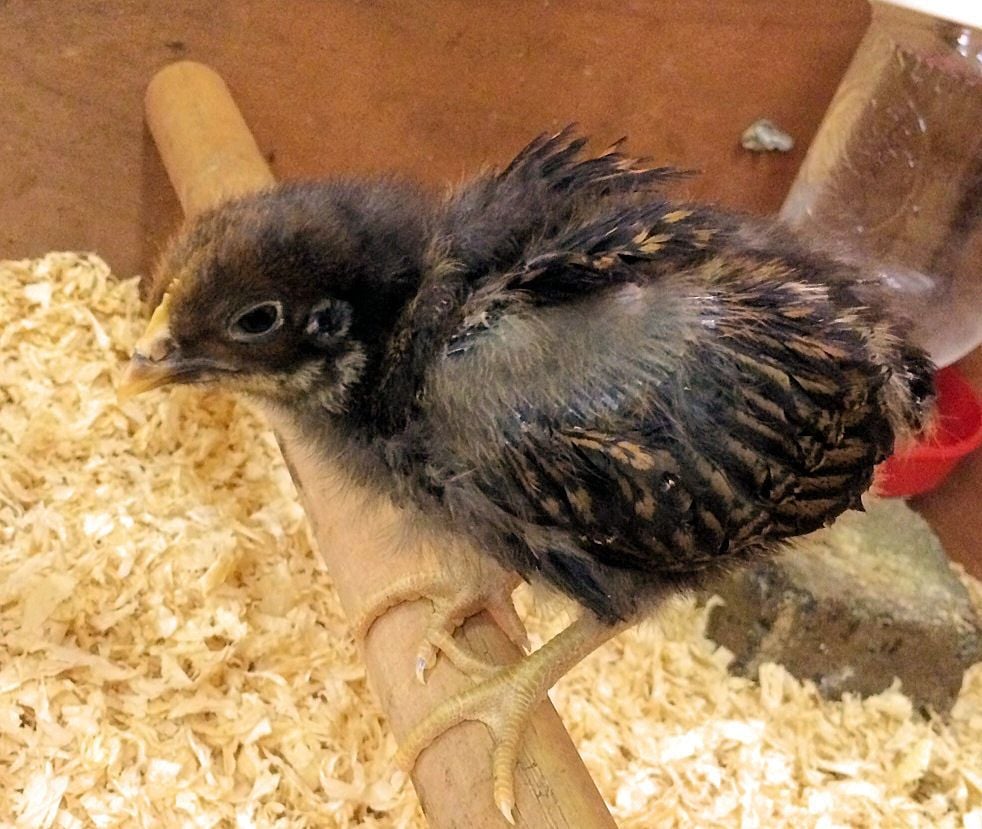 My chicks are 3 weeks today! :) I forgot how quickly they grow, they aren't little balls of fluff anymore! I ordered 18, 15 of those survived. I ordered mostly from the assorted packs so I am still trying to figure breeds out.