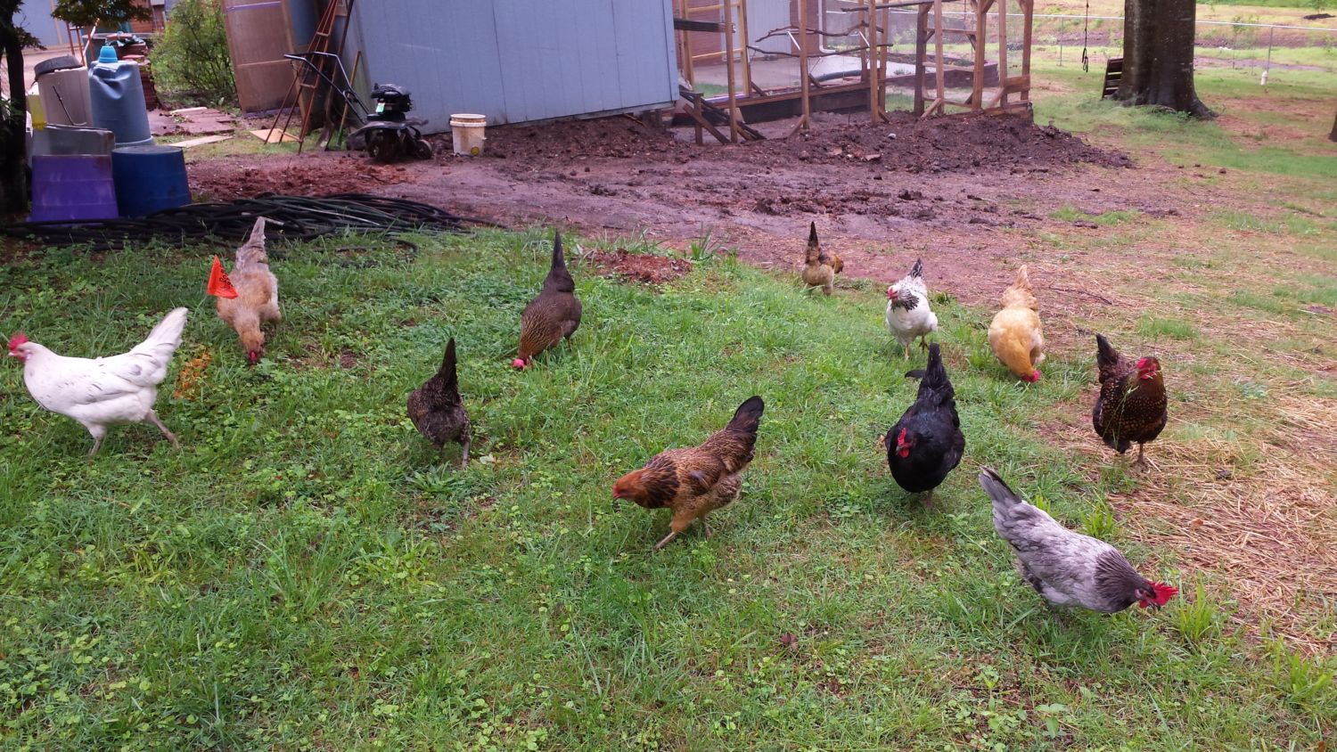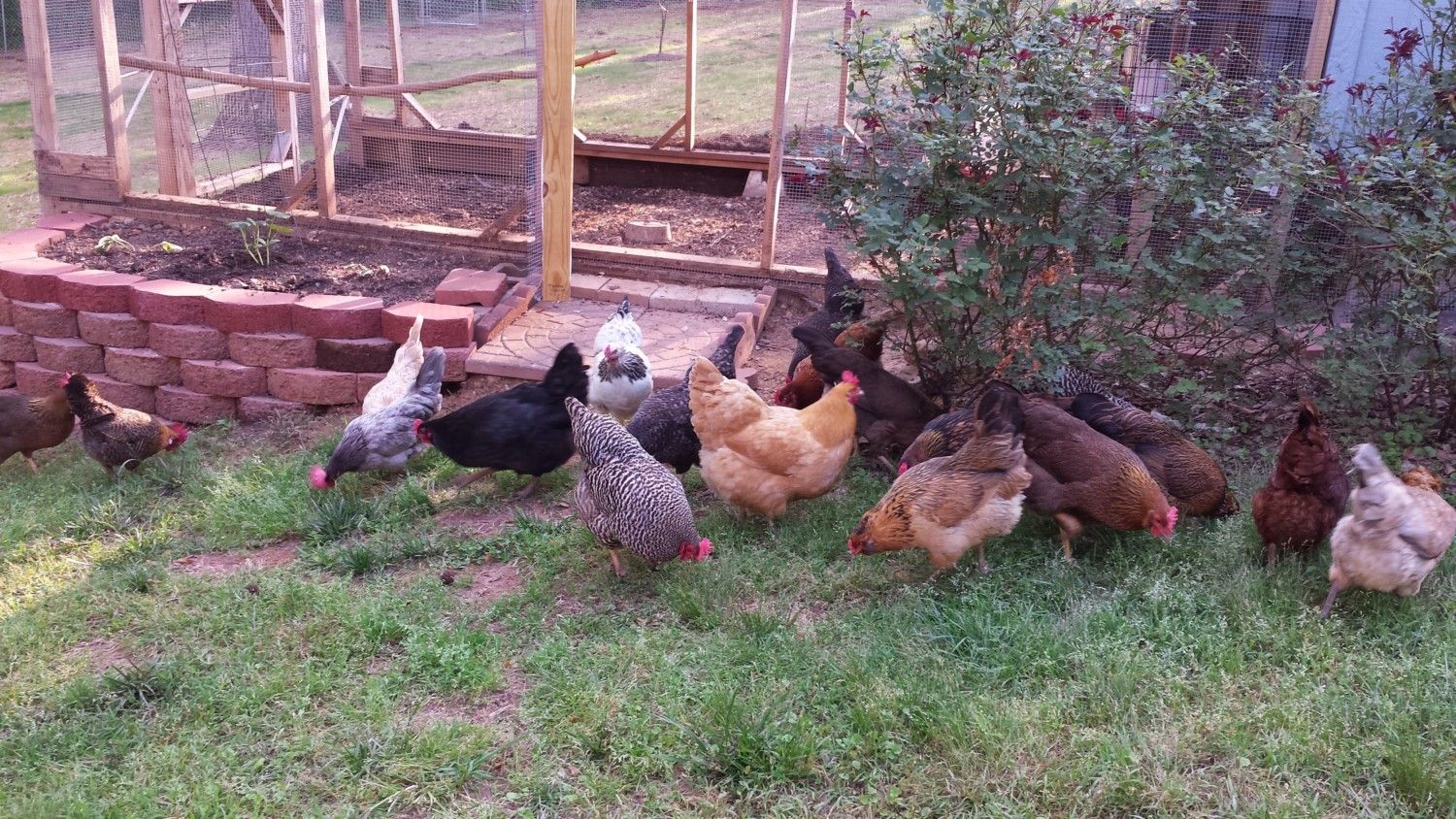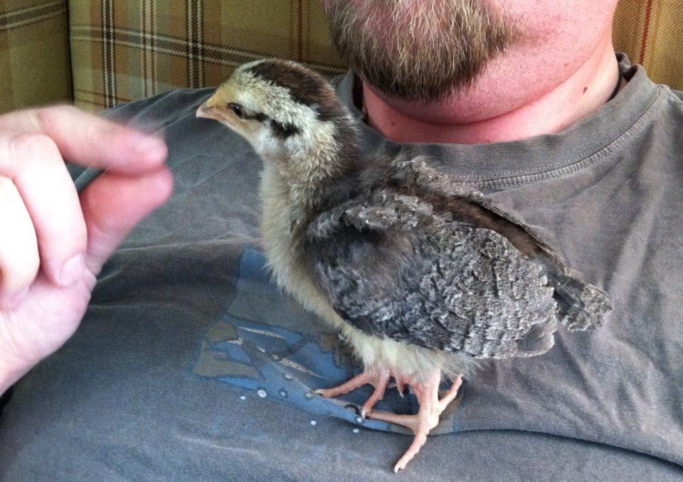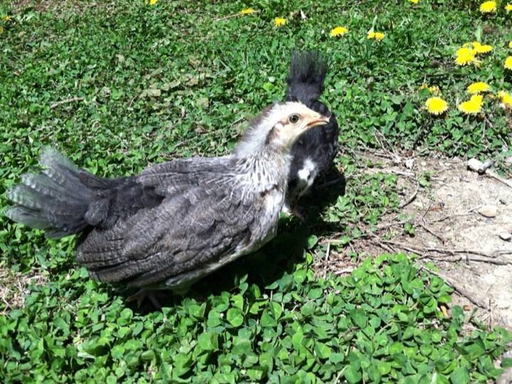 Here is a pic from yesterday when most of the other girls were hanging farther back she edged over to me to be petted, of course our Buff Orpington was on my lap when I took this. I joked with my husband yesterday that I wish we could have all Orpingtons and Dorkings. Just reacting to the drama with our Buckeye who is very likely a roo or a really aggressive pullet, frequently picking fights. Yesterday s/he jumped up in the air and aimed her claws at another chick, twice. Finally Amelia or Golden Buff tapped her on the head twice and Clara our EE raised her hackles back at the Buckeye. I've never seen Clara have conflict with anyone, she is such a giant hawk compared to them. Seriously considering taking the Buckeye to a local