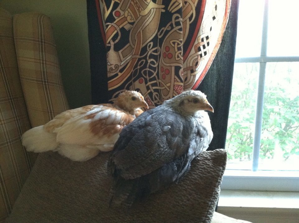 I'm sure they won't be on the heat for very long, but I'm keeping them inside while they are little & we are already using the AC here in KY! I didn't want to use a heat lamp because I work outside the home & the risk of fire with cats running around. (The brooder has lids that lock down with cat proof screens). The premier 1 heat panel seems very nice & I will have it for a very long time! I ordered the waterer from premier one as well. Here is the link: http://www.premier1supplies.com/detail.php?prod_id=120914&cat_id=140