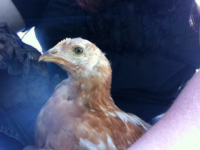 My SS Olive. It's crazy how much they have tamed down in the last week. I mean they don't come running to me, but they run away much less and don't squawk like the dickens when I catch em.