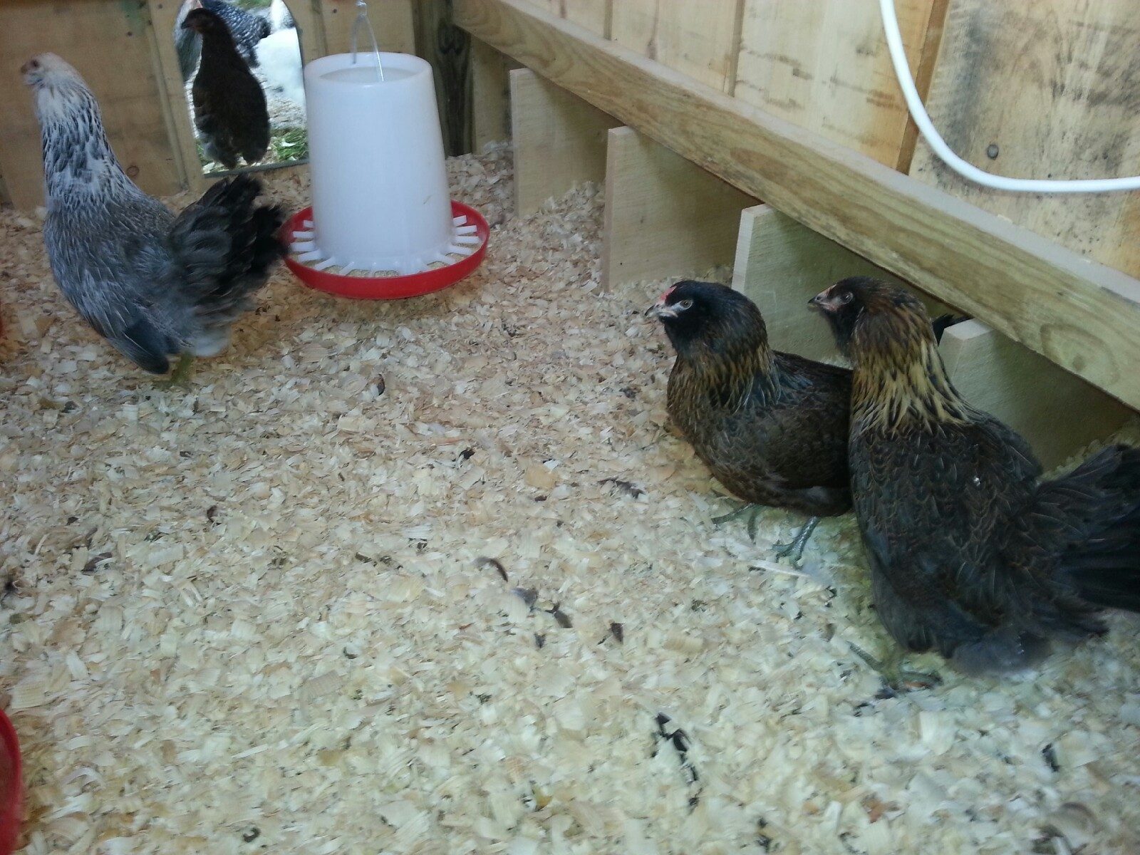 Hey, y'all, sorry I haven't posted updates of my babies here lately! Long story short, I was bummed for a while over a number of things, one of which being that my Georgette is actually a Georges, and my Mabel looks like she might actually be a Maverick. :/ This is the first time in 3 years ordering from Meyer that I've gotten 'oopsie' boys, so I'm okay with that, considering. I am a bit ticked, though, because I got 2 Marans and a Welsummer for dark eggs, and one of the Marans and probably the Welly are not bound to lay eggs in their lifetime.The good news is that by their feather colors, both Elda and Kit are definitely girls, and the Legbars are autosexing, so they're girls as well.