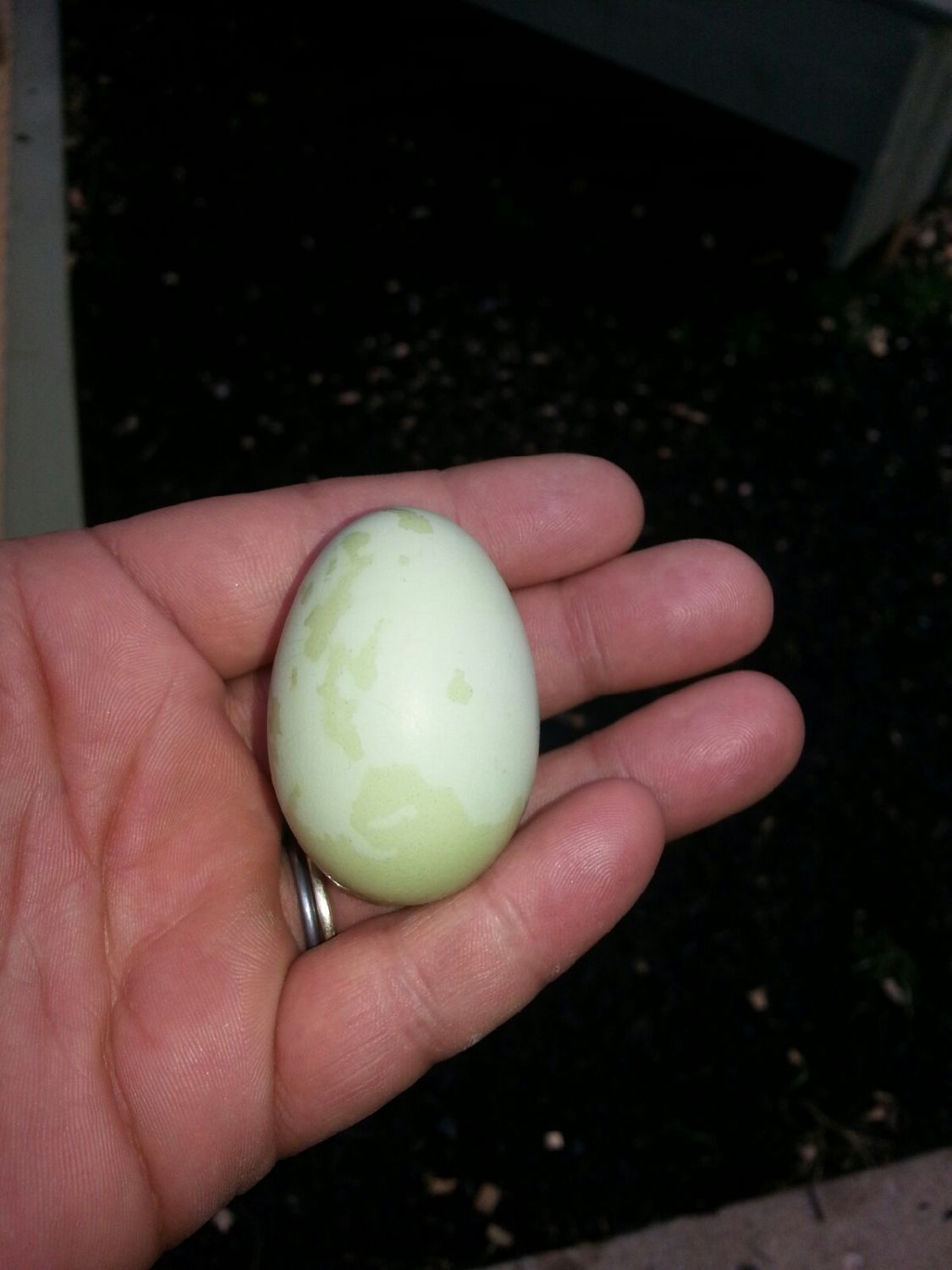 Congratulations on the first egg. Any more? I got 2 started Easter Eggers from Meyer last Thursday, as well. No eggs, yet. I can't see from the photo that you posted, are your EEs red in the face? Can you post some close-ups? I'm just wondering how close mine are to laying. One has a red comb, the other's comb is almost non-existent.