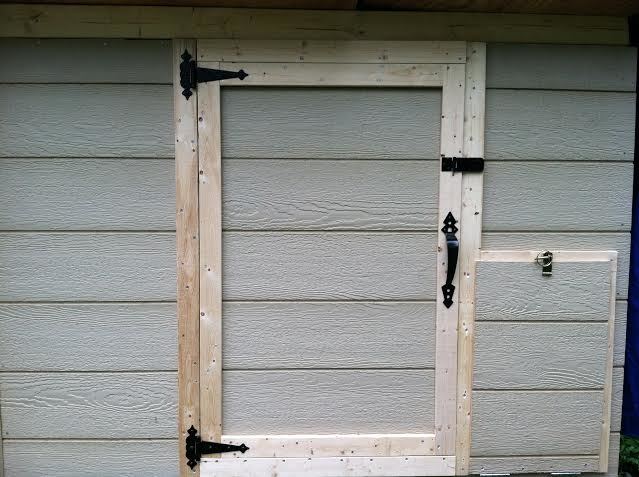 Your coop is coming along well!! So great to hear Clara is back to acting normal!So good to hear, hang in there Apricot! Great name btw, I referred to our BO as Apricot when all the chicks were getting their feathers and I was calling Amelia- Ginger and the Buckeye- MahoganyI am so relieved that Clara who we think suffered a mini stroke last weekend is almost completely back to normal. That's so funny I was looking at your list in your signature the other day thinking a Blue Laced Red Wyandotte would look really good in your flock with the Blue Orpington. And you will already have one golden laced Polish anyway. But of course I wasn't going to suggest that to you as it would seem rude and everyone has their own tastes. The BLRW are my favorite Wyandotte next to the very rare Buff Laced Red. One day I plan to get some from a breeder as hatchery lacing isn't always the best. And while I never thought I would want Polish the Buff Laced are gorgeous! I think someone on here a couple weeks ago asked for coop progress pics. We finished up/replaced the last two pieces of trim around the big door and put on the last of the hardware. Amazingly we also managed to figure out the chicken door, we tried so many ways with the hinges and since the door frame was not even in measurements we couldn't make it flush or inset so we have it overlapping the trim. Husband had to keep reminding me its going to be open all day. We still have the roof and the windows (framing on the inside aka sill and casement, hardware cloth on the outside with trim over it and eventually shutters (but those can be added later, like when I paint it in the fall). Today I need to use sealant on the spaces where the interior and exterior paneling meet the framing on the windows and vents. There are two square windows on the sides of the coop and three long vents on the top back wall of the coop (just divided by the studs). Anywho here it is, 4x6 I think.