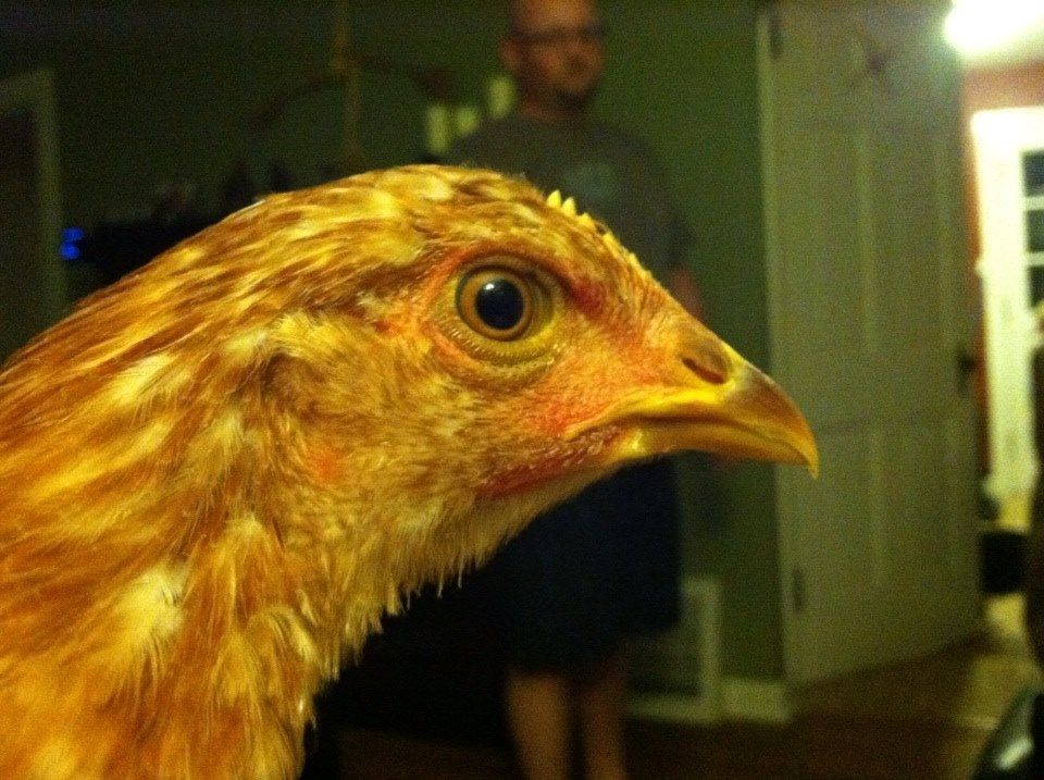 Clove. As you can see she has already perfected her "stop interrupting my nap for pictures" stink eye. She doesn't look like that all the time! She's actually quite sweet, and has the longest neck ever- I think she's in that long, lanky stage right now. Rue. Oh Rue, I still question if you are a she or he. Feathers say girl all the way but some days her face looks red (never the comb itself but the surrounding skin. Her waddles are also a teeny bit bigger than Cloves. Guess time will tell!