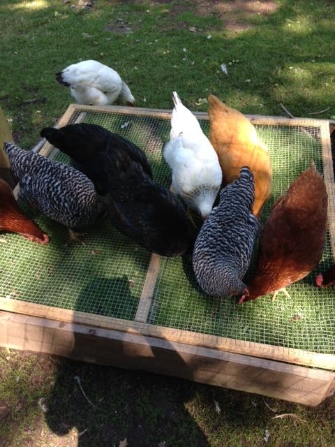 That's a good idea. I'll still need to run temporary fencing so they go to the back yard and side yard and stay away from the concrete sidewalk and patio. They really love to dig up the worms and grubs in my husbands rose and gardenia garden which he was really fine with, they would dig really deep under the wood shavings that we put there. The bushes there are well established so they didn't do much damage, but they kept throwing the wood shavings all over the drive way and of course adding a little poop here and there. If they'd just stay in the grassy area in the back near their coop and run that'd be great but they have made craters along the grass in the walking area to our patio. I'll have to take some pics to show you the mess. They do have a big grassy area to range on that we are fine with them digging up, but I guess they like to be near us and the house. I'll run out later after getting some office work done to snap some pics of our setup.
