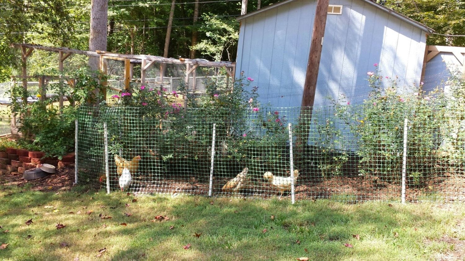 We had a close encounter of the hawk kind. The chickens were having a fit and most of them were in the outside temporary area that I made for them. I looked outside and there was a hawk on top of the run. It swooped down and tried to land where the chickens were, of course they were all screaming like they were about to die. I had bird netting over the spot where he flew and he got caught up in it and flew off and landed on the ground, then Maxie, our dog ran out and chased it away. Close call. The netting was not completely over the whole area, so I was lucky it landed where it did. Now the whole area is covered in netting, I don't want anymore trouble.