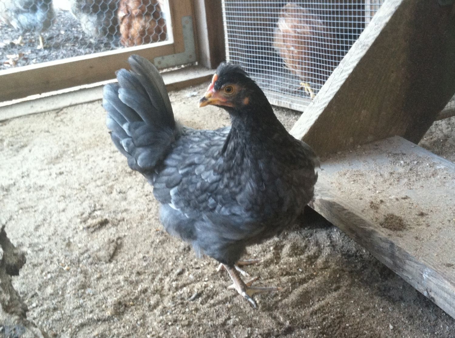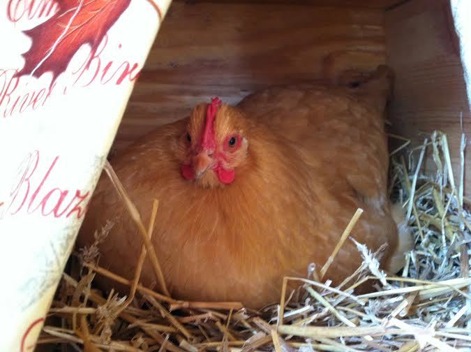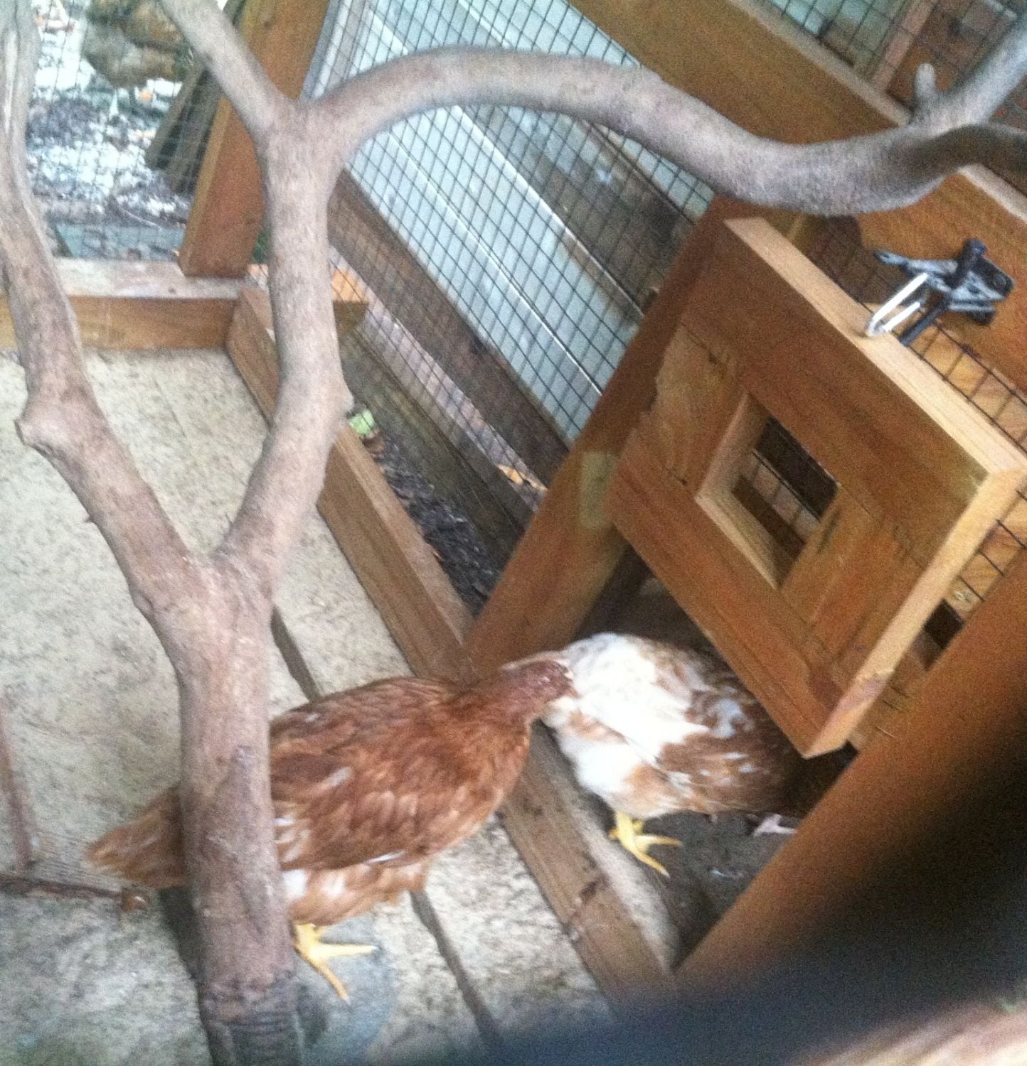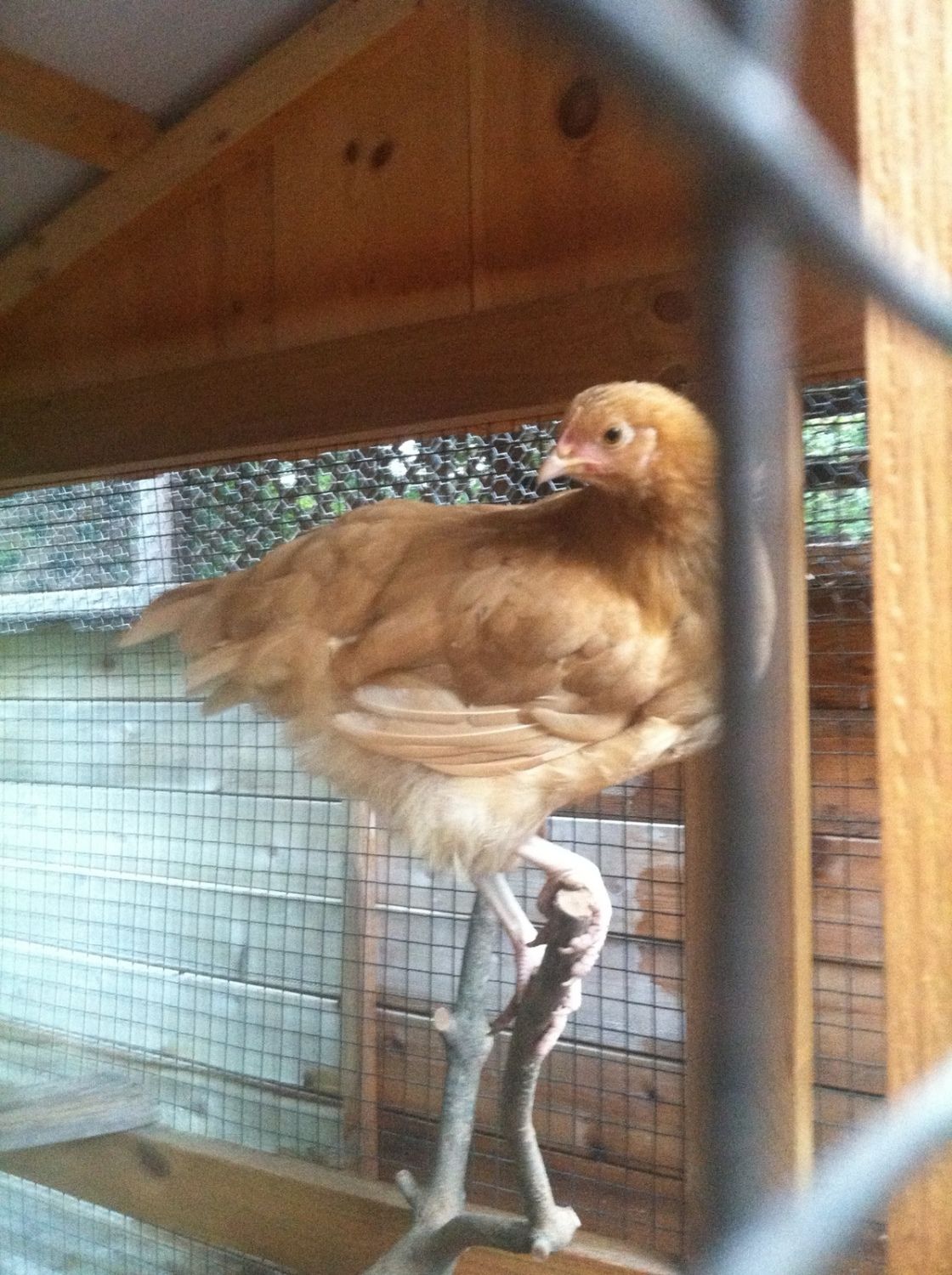 LOVE Victoria, such a perfect name for her!! And love your stories... lips on her comb.... I can honestly say I never heard that before LOL. Mine carry on and are more loud when they lay than when they first started laying.... hope yours settle down.So apparently I underestimated Baby Buff today. After seeing Rowan onto the bus and supervising free range time while picking up twigs and branches for an hour, I was cold wet and in need of a shower. While drying off upstairs I heard honking from outside. My husband has a long weekend off so I asked him to go see what the ruckus was while I got dressed. He came back inside when I got downstairs and said Baby was in the nest box and did not appreciate having the lid lifted up and squawked at him to go away. So I went out there and sure enough she is singing the egg song, loudly, non-stop, from the nest box. She had been checking the nests out yesterday but her comb and wattles are still pretty small, though a deeper pink than before and has been squatting for almost a week. I stroked her and talked to her and told her the egg song is for after you lay, but she wouldn't quiet down, so I picked her up. She still had little outbursts while snuggling except when I had my lips on her comb and was stoking her wattles. Meanwhile Clara was laying in the corner and when I picked up her egg, Baby carried on with the egg song. So I thought, she's just getting excited about the idea of laying, she's practicing being a big girl. That or she's going to be one of those odd pullets who goes broody before laying their first egg. I set her down to take Clara's egg inside and she leaves the coop and sings the song for Clara.