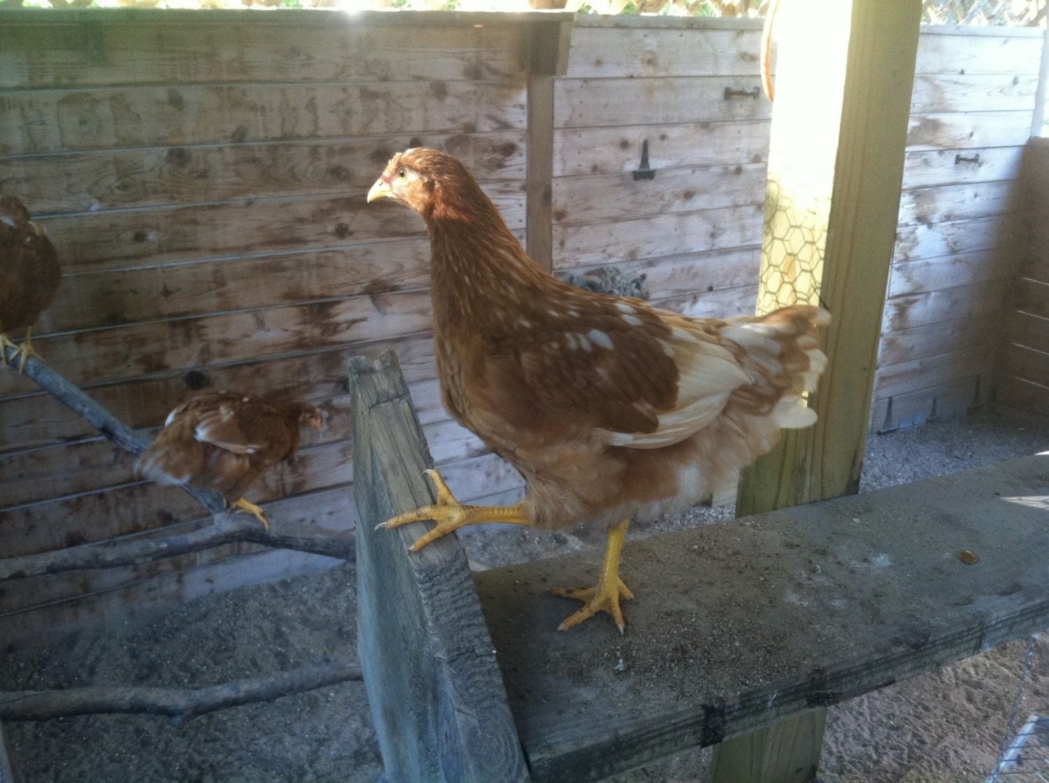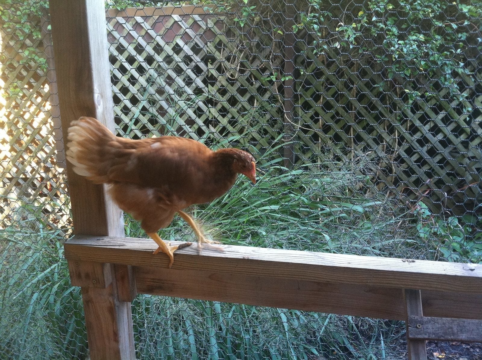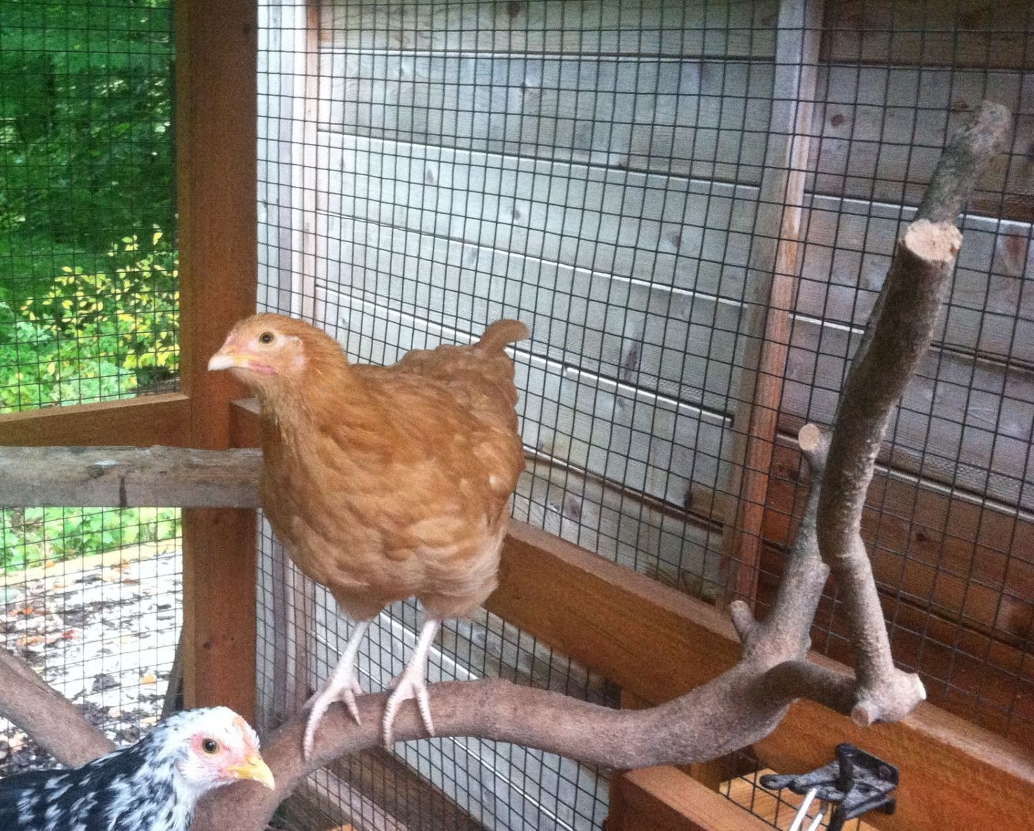 LOVE Victoria, such a perfect name for her!! And love your stories... lips on her comb.... I can honestly say I never heard that before LOL. Mine carry on and are more loud when they lay than when they first started laying.... hope yours settle down.So apparently I underestimated Baby Buff today. After seeing Rowan onto the bus and supervising free range time while picking up twigs and branches for an hour, I was cold wet and in need of a shower. While drying off upstairs I heard honking from outside. My husband has a long weekend off so I asked him to go see what the ruckus was while I got dressed. He came back inside when I got downstairs and said Baby was in the nest box and did not appreciate having the lid lifted up and squawked at him to go away. So I went out there and sure enough she is singing the egg song, loudly, non-stop, from the nest box. She had been checking the nests out yesterday but her comb and wattles are still pretty small, though a deeper pink than before and has been squatting for almost a week. I stroked her and talked to her and told her the egg song is for after you lay, but she wouldn't quiet down, so I picked her up. She still had little outbursts while snuggling except when I had my lips on her comb and was stoking her wattles. Meanwhile Clara was laying in the corner and when I picked up her egg, Baby carried on with the egg song. So I thought, she's just getting excited about the idea of laying, she's practicing being a big girl. That or she's going to be one of those odd pullets who goes broody before laying their first egg. I set her down to take Clara's egg inside and she leaves the coop and sings the song for Clara.