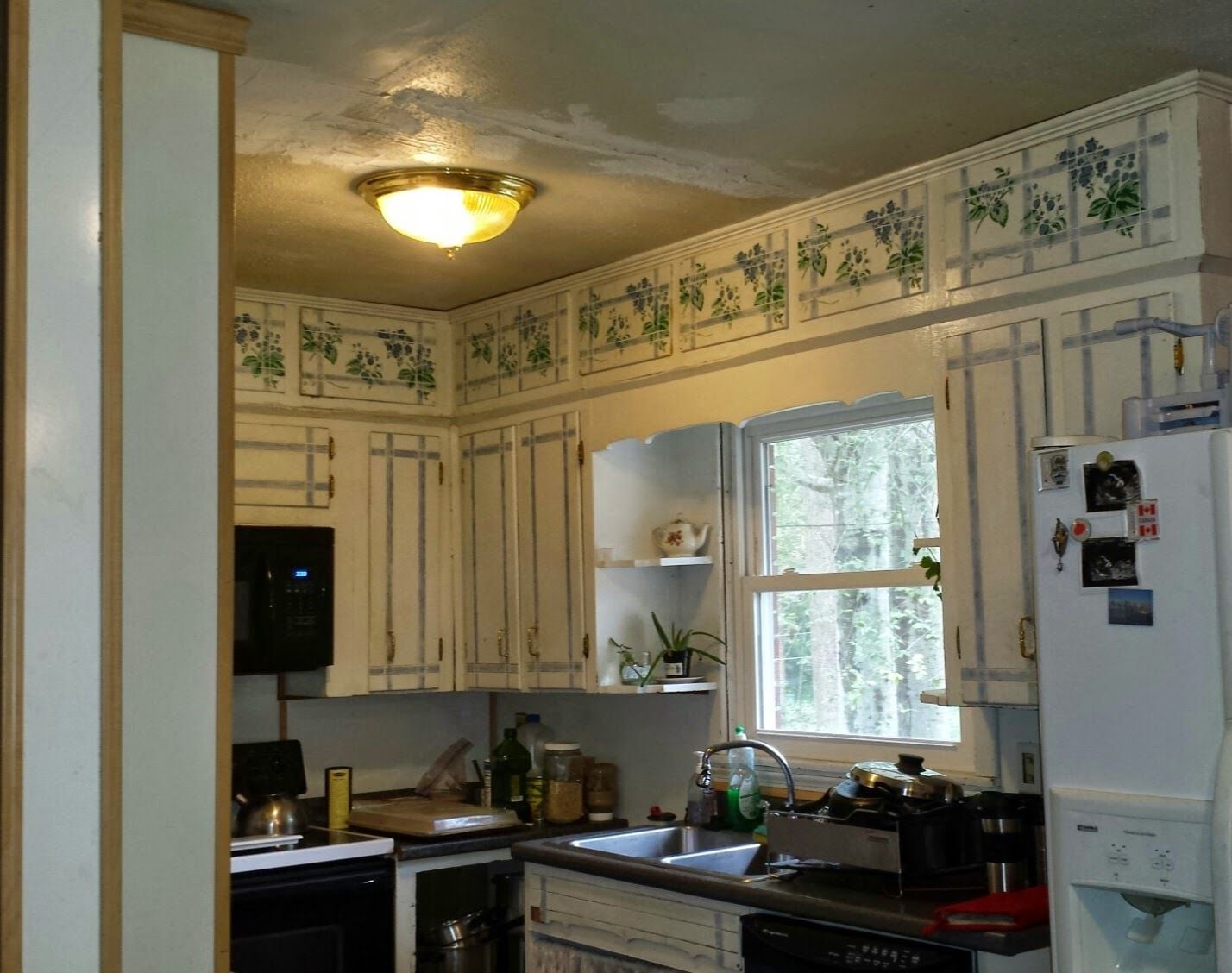 For those interested. I know a little off topic but here is our kitchen remodel project we are working on. This is before the cabinets were taken out. You can see the messed up ceiling in the picture.