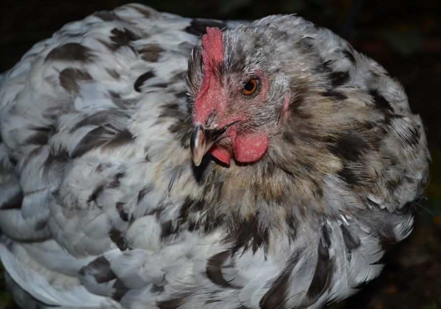 What type of comb does she have? Is it possible, since she's clean-faced, that she's a splash Orpington? I don't remember what all you ordered, so just wondering.