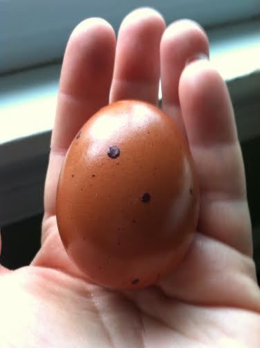 Yes, I think you are right! Actually after posting the above I thought about editing it. Our Buff Orp who lays a pinkish light brown egg sometimes has large off white bumps on hers and sometimes just light speckles, usually these are when she takes a long time to lay, extra time, extra calcium? I showed the egg to my husband when he got home and he made a face, I asked if he though it was ugly and he said yes but that's appropriate for Morgaine. I said she's not ugly and he said no she's not but her personality is. She's a bit of an unfriendly complainer but she could be much worse and she was very good about everyone being in the coop while she was laying, not like Clara or Baby who screech when another pullet comes near the ramp.