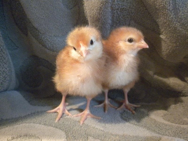 Top pic were my 2 RIR at a few days old and then the 2nd pic one is right at the tip of my fingers. Top pic they look pretty light but the 2nd pic shows her back and it looks like yours. I had a pic looking identical to the pic of yours you posted but I must have deleted it; I can't find it.