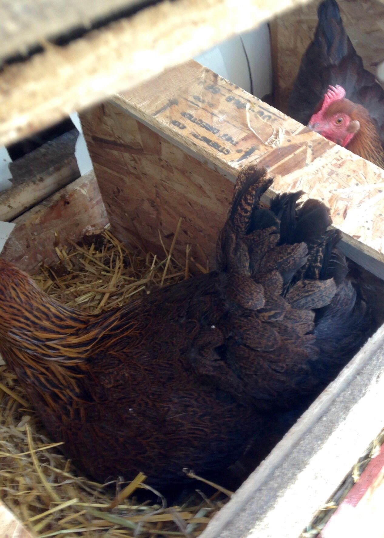 Hmm, it's possible... She is definitely still molting, pin feathers are still coming in on her tail and neck. She hasn't laid in two months, though I know hens can go broody while not laying, not sure if a molting hen would though. She does spend more time in the coop than the others, but I attributed that to the molting. Occasionally I will find her in a nest box hiding out but she doesn't stay there for too long. More often she hangs outside the nest box keeping the laying girls company. She was always like that, she would watch each girl lay their first egg, she was the last to lay in November. She does come out though, she eats and drink and scratches around with her sisters, though more often she huddles in a corner under the coop. We do have lots of straw under and in the coop now, hmm... I would actually love it if she went broody, I feel she would make the best mom. She is so calm, patient, tolerant and a great companion bird. Our Buff Orp has shown broody tendencies, but I don't let her stay on the nest and she doesn't go back. She is too jealous and demanding and she will occasionally peck my hands if I reach under her. But I would glad bring Victoria in at the beginning on March and sneak our chicks under her. I just doubt it would line up that way. We have the Brinsea Ecoglow and the husband feels we should get our money's worth out of it, but he agree she would probably make the best mom, we'll see. Wish I had some wooden eggs...So pretty! Some broody hens will pull out their breast feathers to help warm the eggs. Not sure if that is what is going on, just thought I would share what I have learned.