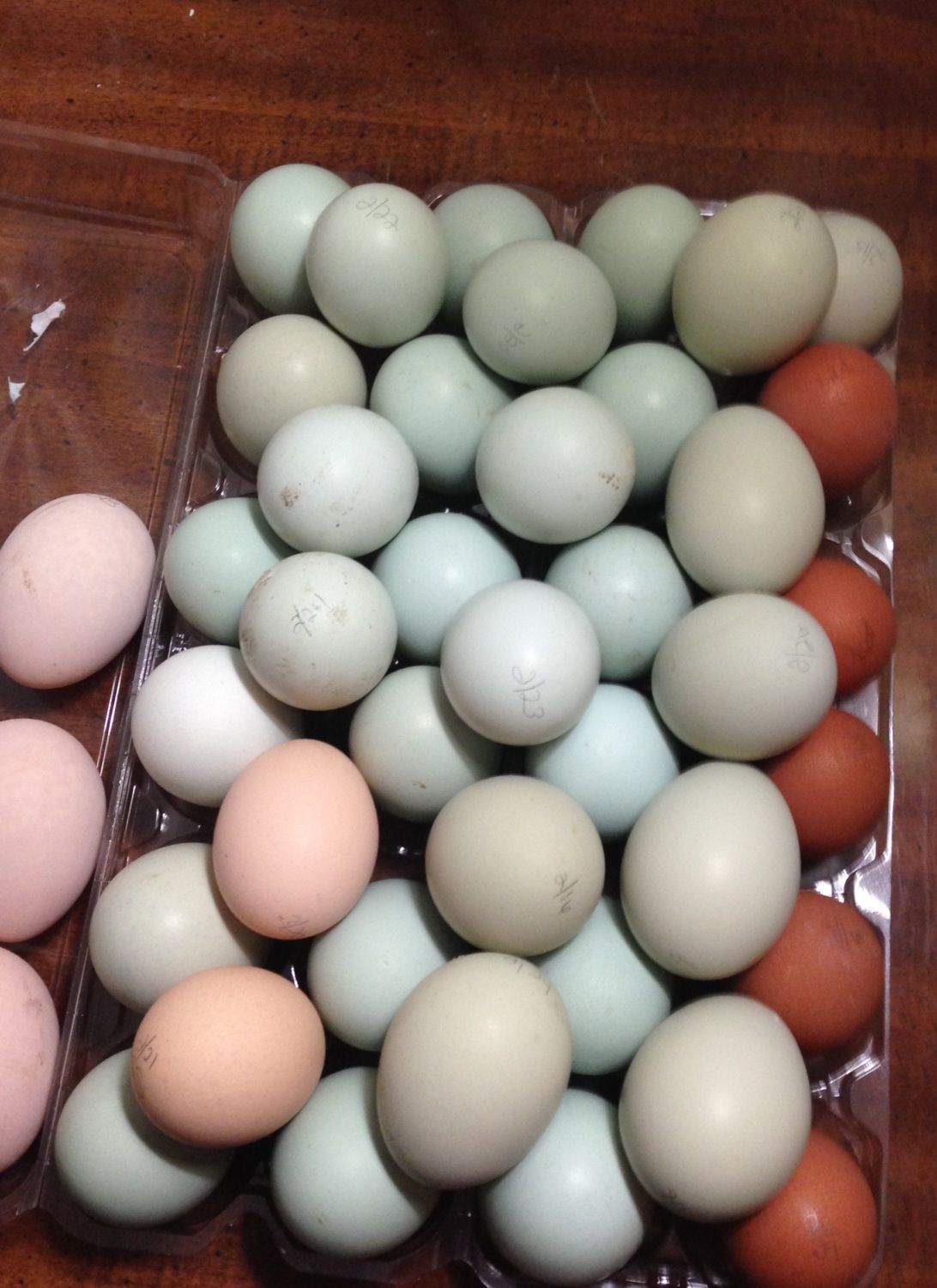 What gorgeous eggs! I received my chicks on Wednesday from Meyers (via MyPetChicken) and was going for a colorful egg basket. I have one each BCM, EE bantam, CCL, and bantam white crested black polish. I was hoping that the CCL would give me a blue egg (for what I paid for it I really expect a blue egg!) but after reading some posts on here it sounds like the CCL may just lay a green egg.