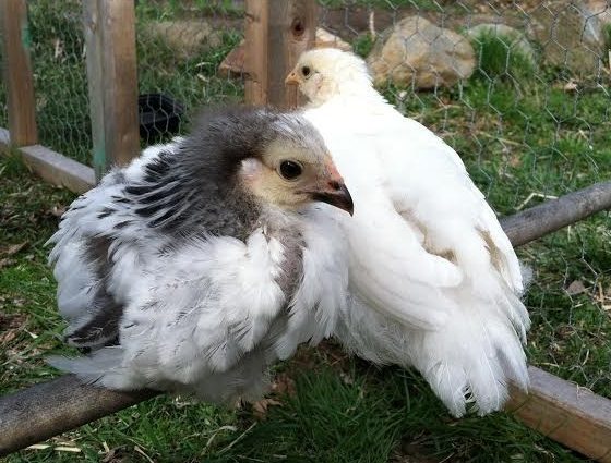 The White Rock and Light Brahma chicks are BFF's they are always together usually napping at the opposite time of Cora. They cry out to each other when I take one out.