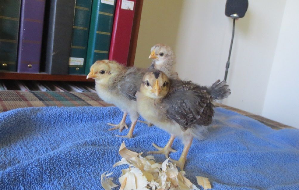 Is that a trio (one male, two females) It's a bit hard to tell but the one in the middle looks like it has a light spot on its head. Looking up pics of Cream Legbar chicks shows a whole lot of color/tone variation. I wonder if the one will darker as a pullet too.