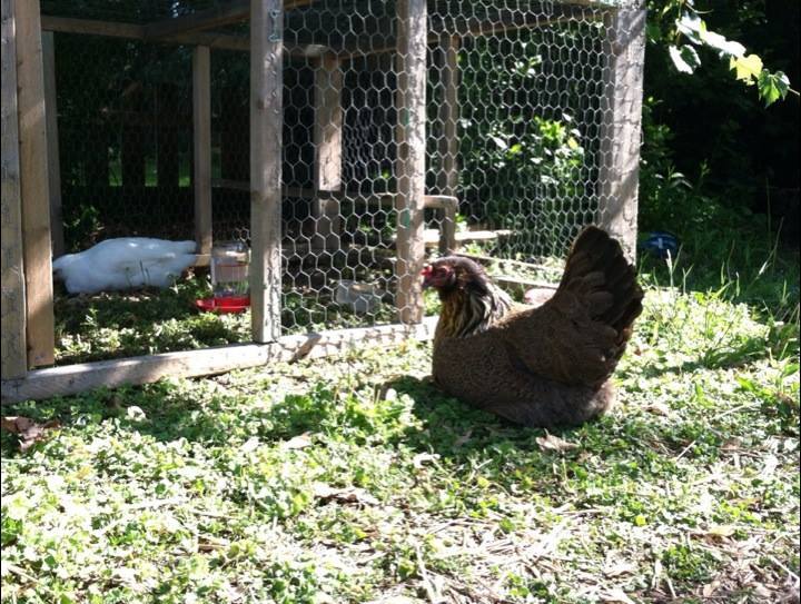 Clara "guarding" the chicks while they were resting in the shade this morning, she did this yesterday too.