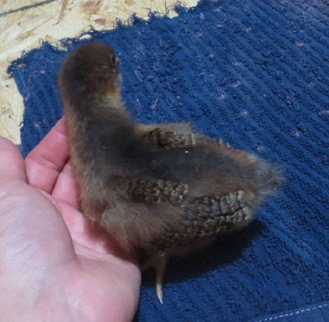 The one thats calm in the video is grabbed my gooses neck and shook it before thats why she has a shock collar. I probably wouldnt trust her out there if i wasnt out there. She still has a tentency of chasing them but gets zapped she never killed one though. My dogs dont like raw meat. They like it cooked. LolAutumnhearth, I'm sure your chickens will eventually get it all sorted out. Of course anyone would second guess having chickens at least once in a while. Anything that's worthwhile is going to be difficult at some point, since nothing in the world is completely perfect. But then it will work itself out and you will still be glad you have them.I almost forgot today was Monday, and I almost forgot to take birthday photos of my little one in the brooder. But I did get some before lights out. It's just Ella now, because Highness didn't make it.