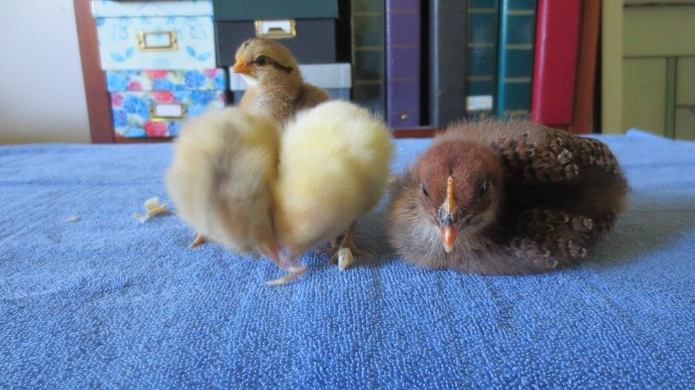Thanks, hyzenthlay!Finnie, your new chicks are so cute! Congratulations on the new babies, and I can't wait to see how they all turn out! That's especially true for the EEs, since the mystery is fun, and yours certainly look different than any I've ever gotten. The one does seem to have a lot of yellow around her head, and I love the spots and fluffiness of the other one! Your CCL looks really proud and sassy, too, in that one picture where she's the star--very cute. Do all your CCLs pretty much look the same when they're grown, or is there noticeable variation? Thanks for the comments on my chick pics, too! I also love the expression on the ameraucana--I keep thinking she looks a lot like a baby penguin.