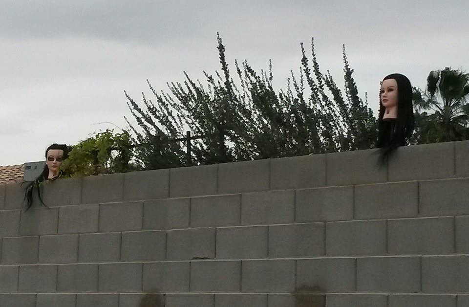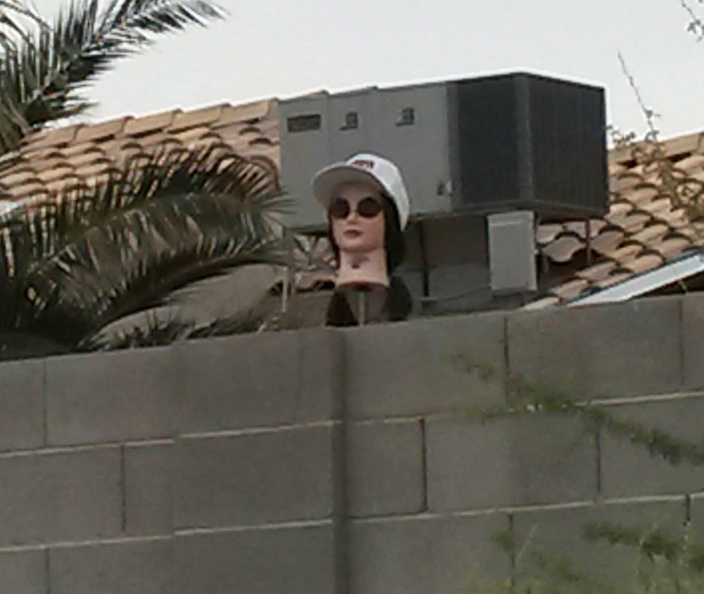 I wanted to share with you what I did that has kept the coyotes at bay. I hope Ill never have to worry about it again. As creepy as it may look, rest assured there are 5 undeveloped desert acres behind our wall so no neighbor has to see this from their morning patio.