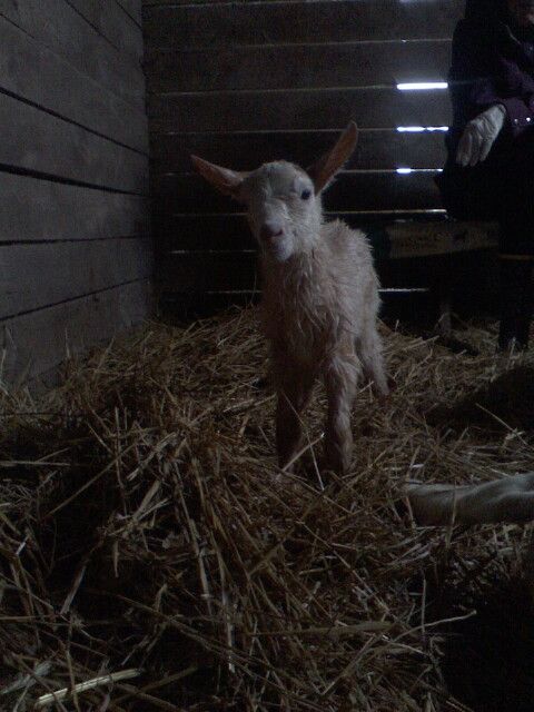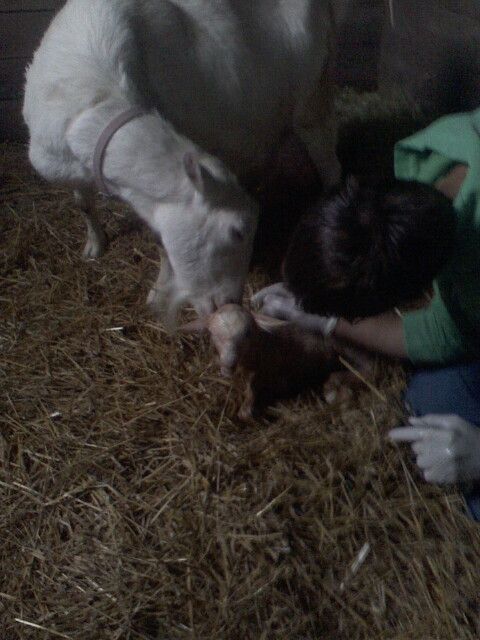 I had gone to the neighbor's to check their goat that was due to have kids, and saw tiny hoofs sticking out of Ethal's rear end, so called the neighbor, and we waited for half hour, saw no improvement. So the neighbor got me gloves and I pulled the cutest doeling out. It was not that easy to pull her out. I had to pull the buckling out a hour later. Everyone is doing well, and the neighbor was very glad that I had come over.