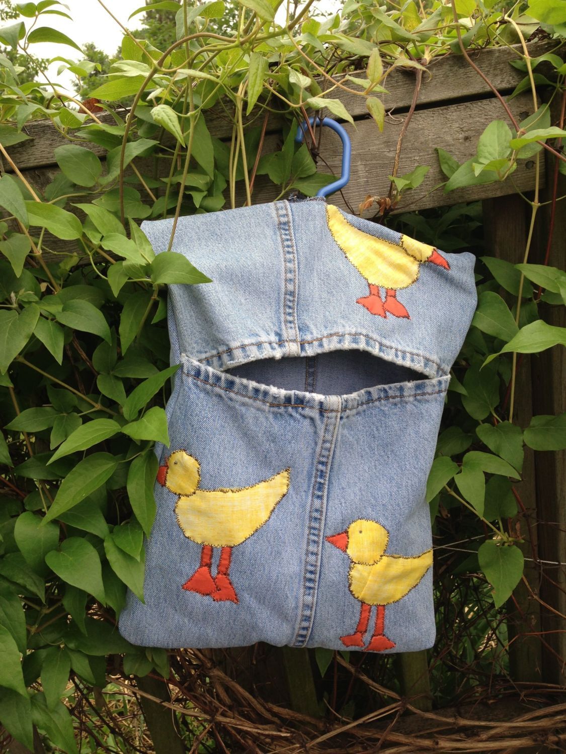 Anyway I just wanted to show y'all what I'm working on now. These are clothespin bags, but I think you could use them also for plastic bag organizers (like grocery sacs) and I made this *prototype* (so it is not perfect) from recycled denim.