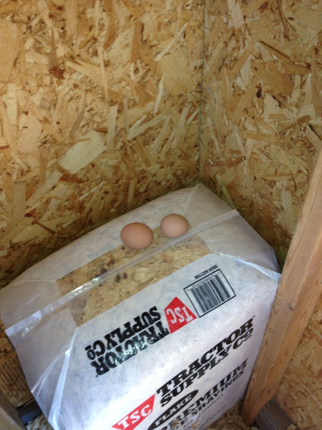 I wasn't able to make Chickenstock yesterday because I had to work, but I had to share this picture! My first eggs today, the silly girls wouldn't use their fancy nesting boxes, but laid them on top of the extra bag of pine shavings I left in the coop