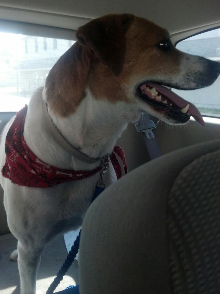 Caught him when my mother took her SUV to cut off his escape down an alleyway. Once he knew he had nowhere left, he sat down when asked. He let me clip a leash to his collar (faded, no tags, has a bandana too), and accepted some water from a bowl (one is kept in the vehicle for our dogs). When I told him 'up', he jumped into the back of the SUV with no problem. He isn't neutered. But he looks healthy, not over or underweight. He has a docked tail, which seems a little out of place on him.