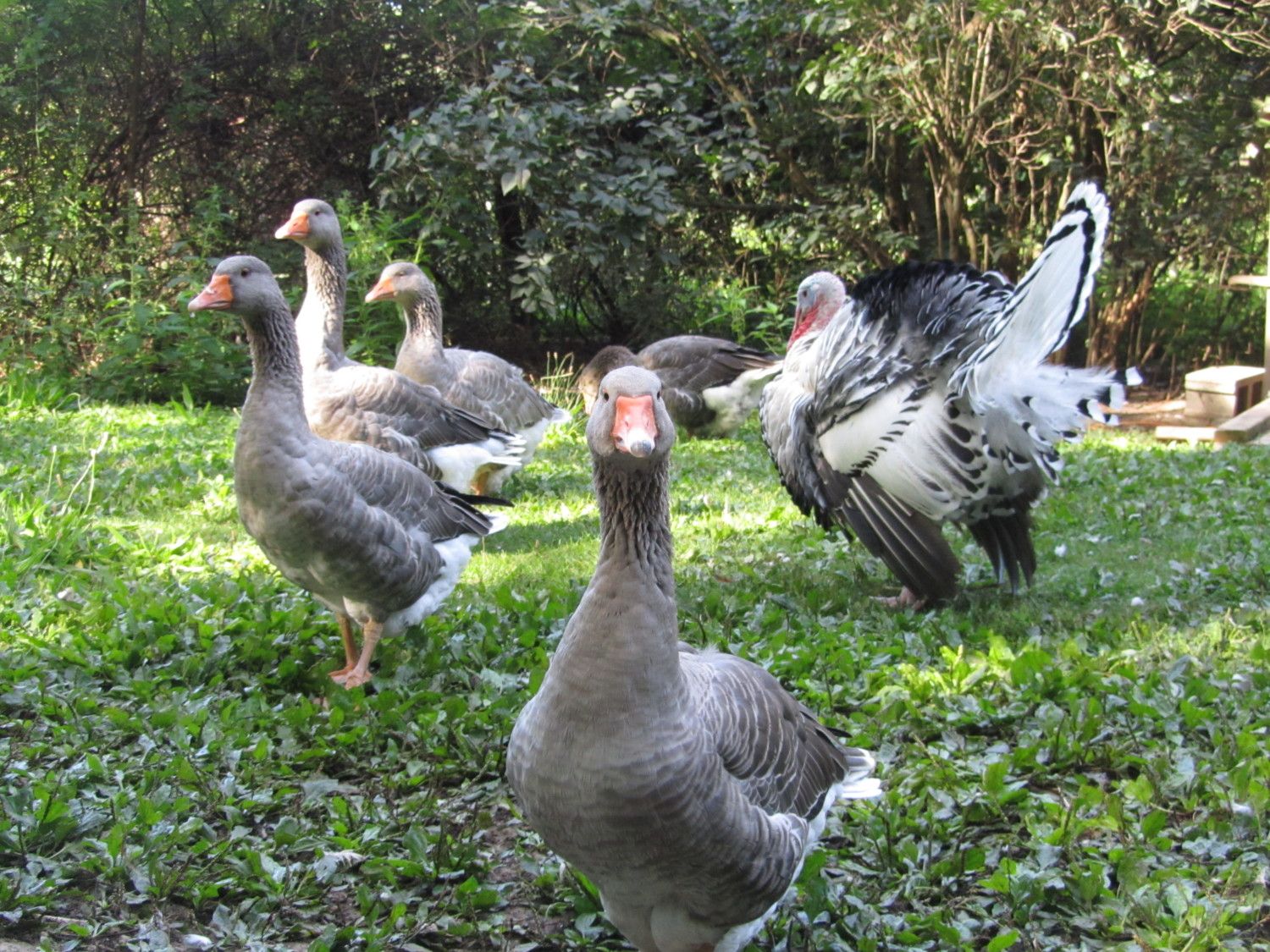 So ever since I lost the Jersey buff tom turkey to raccoons, I've been feeling sorry for the remaining Royal Palm turkey. The two toms used to hang out with each other and occasionally fuss, but mostly try to out-handsome each other. Now Gilbert is reduced to trying to romance the geese, and they just do not fully appreciate his good looks.