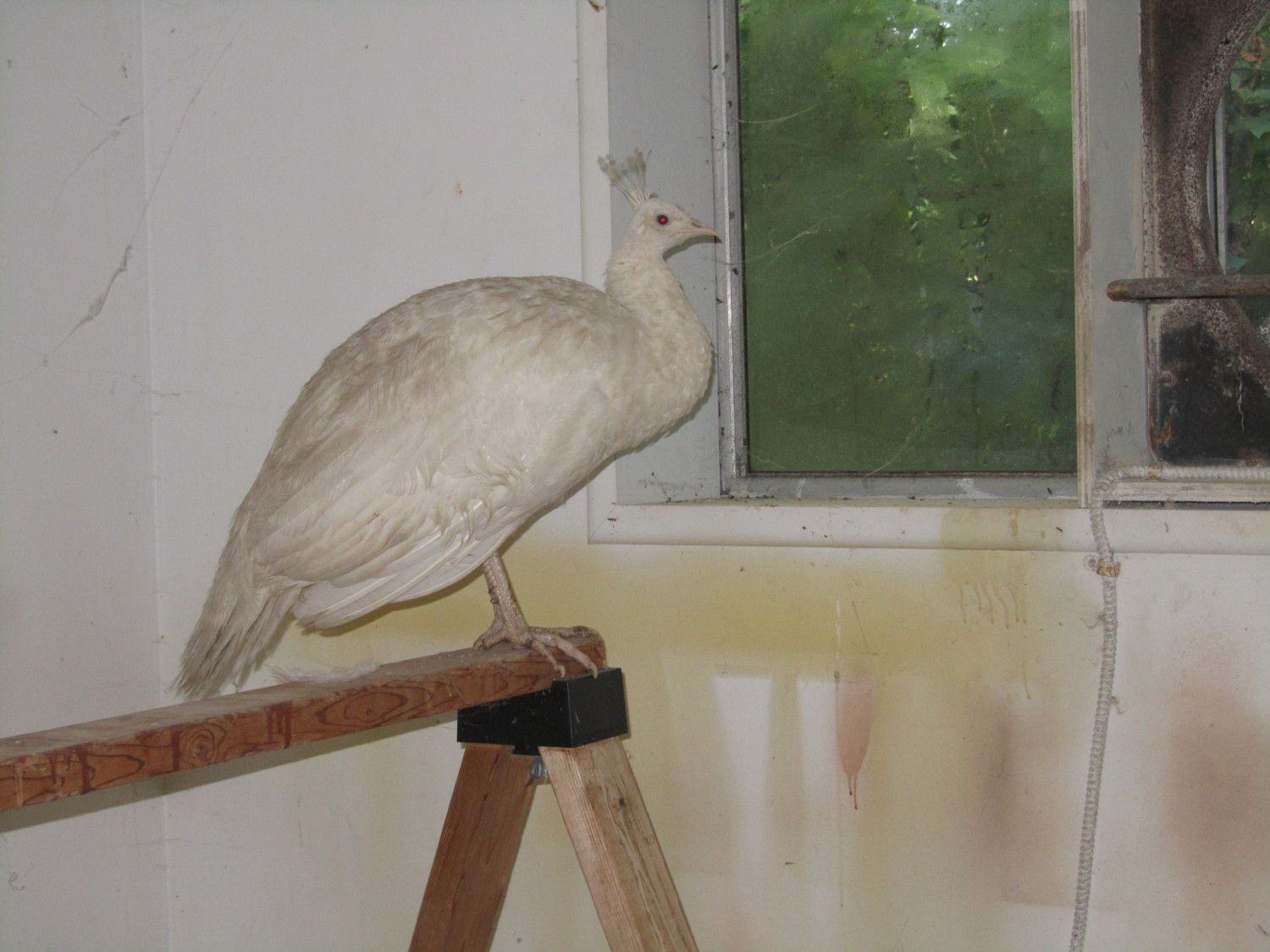 Then a week and a half ago I got an email from one of the neighbors on the road. Seems her back-fence neighbor had come back from vacation and found a white peahen had moved onto their property! And hee, hee, I am strangely enough the only one anyone knows anywhere around with any poultry at all. So suddenly I am the "expert." Ha! But of course I do have a secret weapon. I know exactly what to do. Who ya gonna call? BYC, of course! I posted over at the Peafowl area. And, no surprise, a bunch of super helpful peeps walked me through the whole thing. Here's the thread if anyone is that interested in the details: https://www.backyardchickens.com/t/821869/stray-peafowl-reported-need-advice