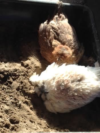 The garage hens, getting a much needed dust bath...... they are in their glory right now!