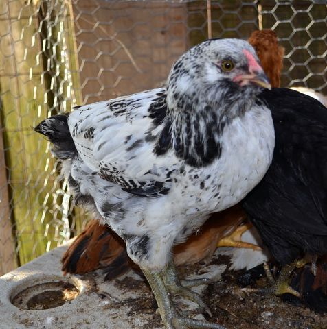 Now add in the Wellies that I got from TSC 12 weeks ago (Townline source), they are supposed to be dimorphic as newly hatched. I picked up 6 pullets and a lone male. Turns out that I have 2 cockerals, both have the black chest feathers (I think aart described that) and they were sparring today. So of the others, without black chest feathers, one has a very prominent comb and wattles, more so than the obvious males. But when I offer treats, she/he/it does the hen squat. I suppose the only way to tell is if and when she lays an egg or crows.