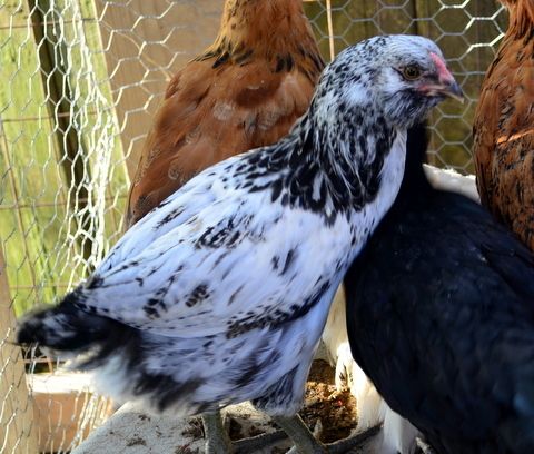 He's a pretty boy. I actually would love to get a black and white bird; I bought a silver-laced wyandotte for that reason. But I'd like an EE in those colors. I guess I mainly want the Ameraucana for the blue eggs. :P My two Townline EE's lay lovely light colored mint-green, and my farm-bred EE lays a darker sage-green egg. But I want blue. I have no interest in showing or anything.