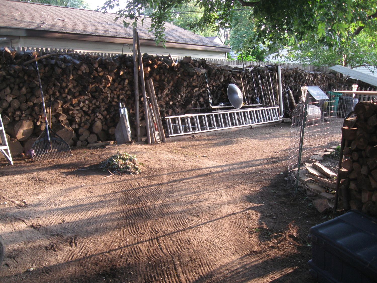 All of the grass that wasn't washed away in the flood is in that small pile. The soil is dry as a bone and compacted like concrete. Last week it was all green there.