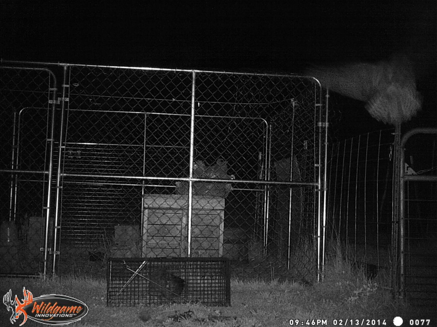 my trap is a bit different...it has a small cage you put the "bait" in so you can actually catch the predator. At least you know what's going after your birds. Question though, how come you don't lock them up in the coop at night?