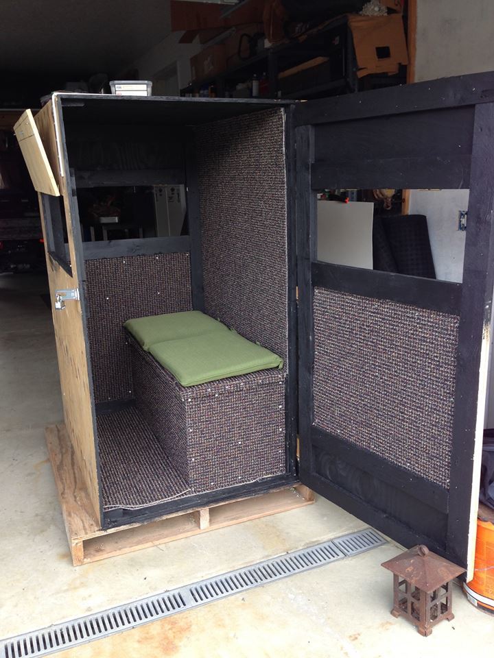 My little hunting blind is coming along, got most of the carpet installed and picked up a couple outdoor cushions on clearance.