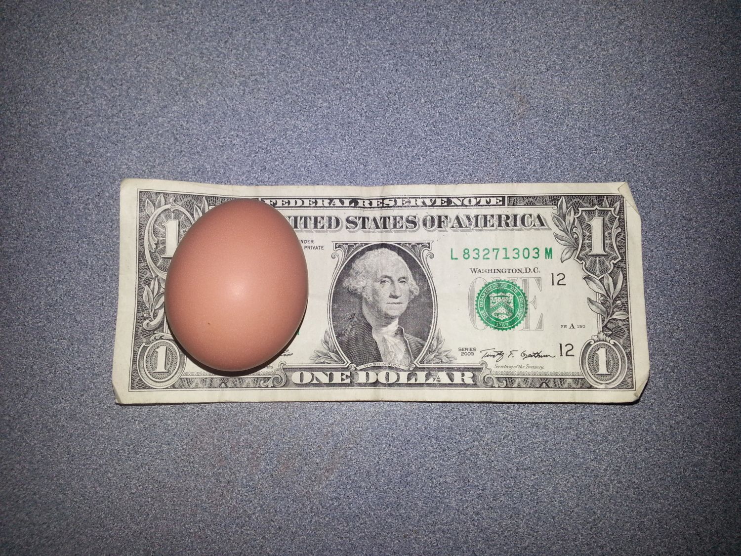 I think one of my Australorps is real close. They've all had the wattles and comb develop, but I have one in particular that has started being quite the chatty Kathy. I already opened up my nest boxes, and I just need to get them some bedding and probably build some kind of curtain-y thing. Dollar bill was a perfect thing to compare it to, as most everyone has at least a dollar floating around, or can pretty easily recall the size.