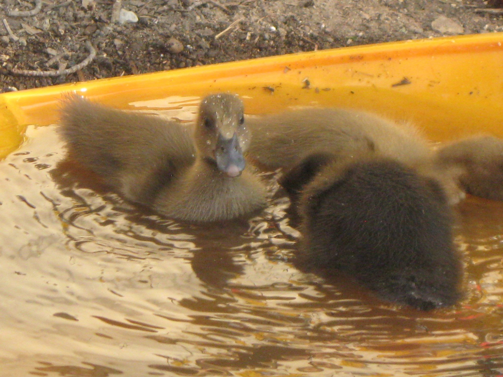 No pictures but a hatchling update. Chicks are almost 2 weeks old and seem to be fully integrated in with the rest of the flock. Ducklings are 5-6 days old and spending all day out with and away from the others. But they are giving mother hen worries with their independence. She wanted them to go in for the night but they insisted in playing in the sprinkler. So funny to watch mom scold them from the perimeter while they were making mud pies. Just wait until they find the pond.