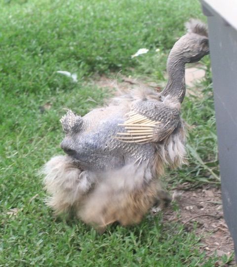 Martin my badly molting Showgirl hen.