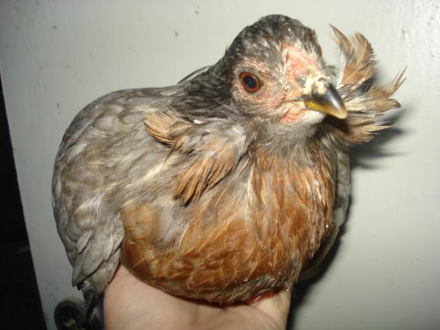 Pullet # 4. Blue-ish, tufted, rumpless. More updated picture.