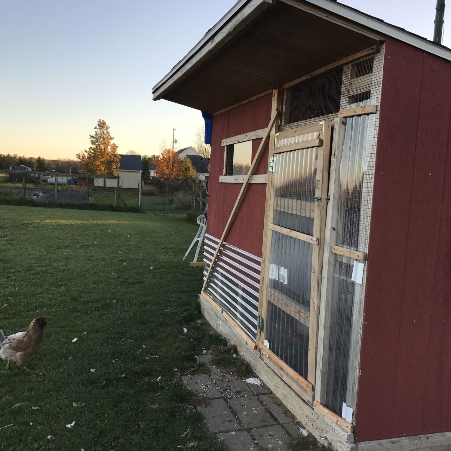 Has anyone built a "storm window" of sorts to attach to your run wall to block the wind? Thinking of going to Home Depot and getting some 1x3 material and plexiglass. Sandwiching together to make a single piece, and then attaching the whole frame to the run wall. I could store it against the wall in the barn during the summer and not have to worry about plastic every winter. Its just a thought.