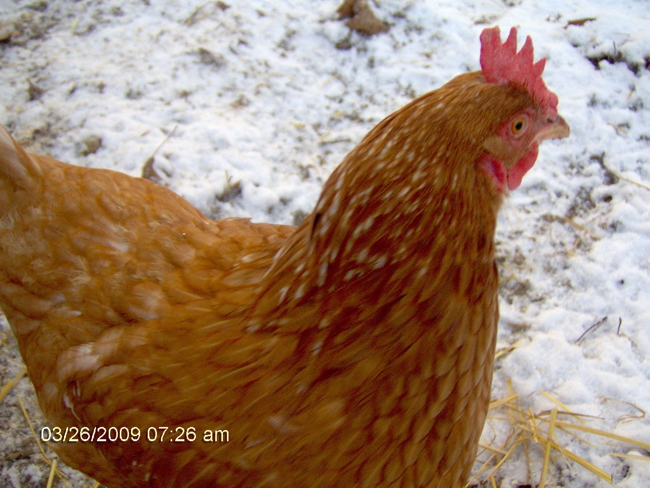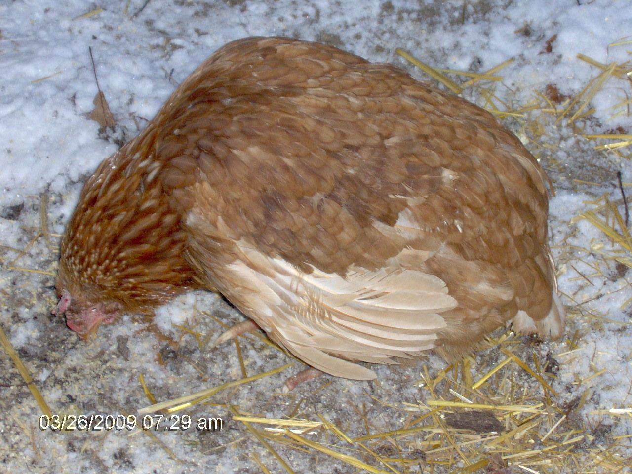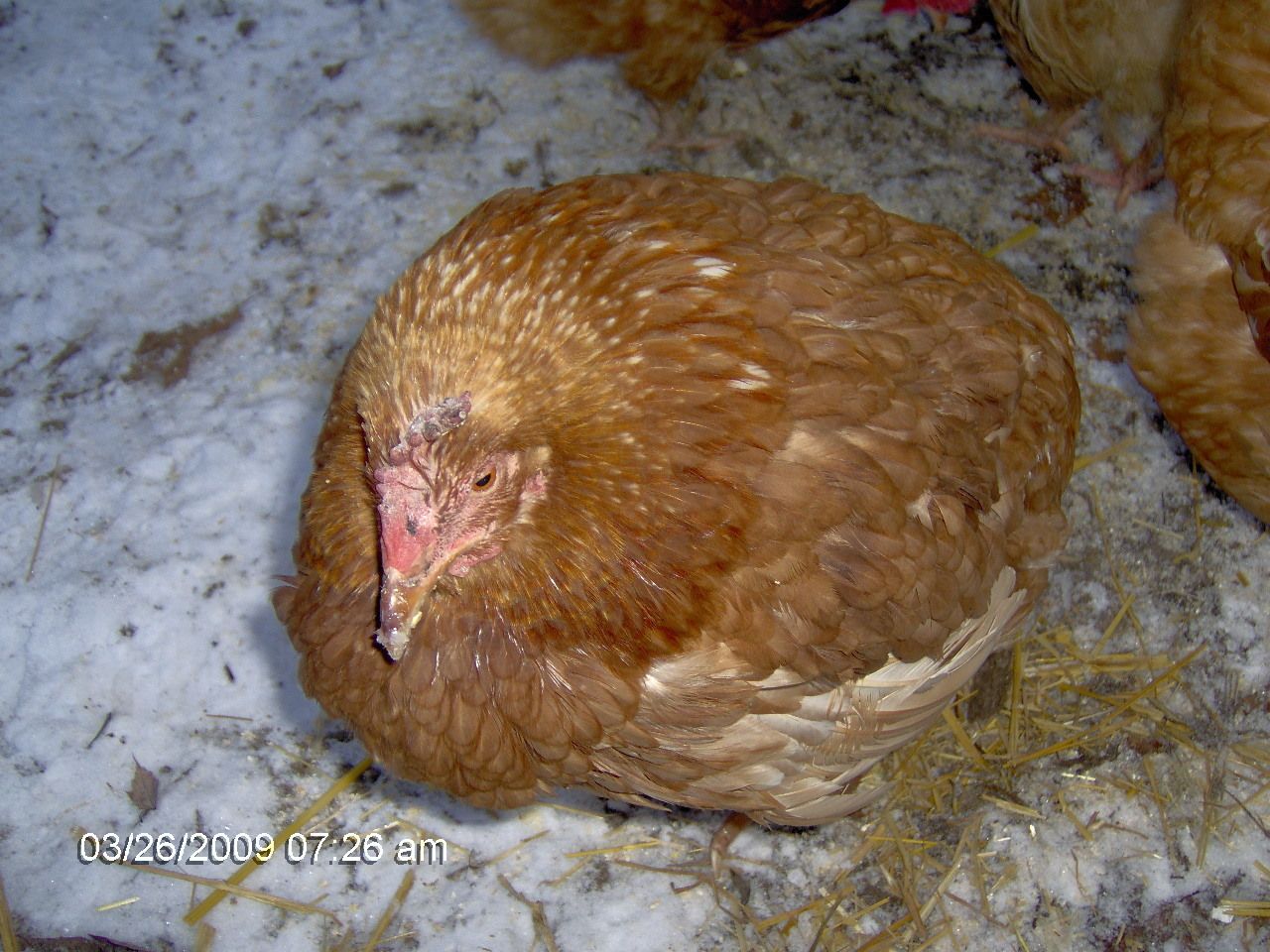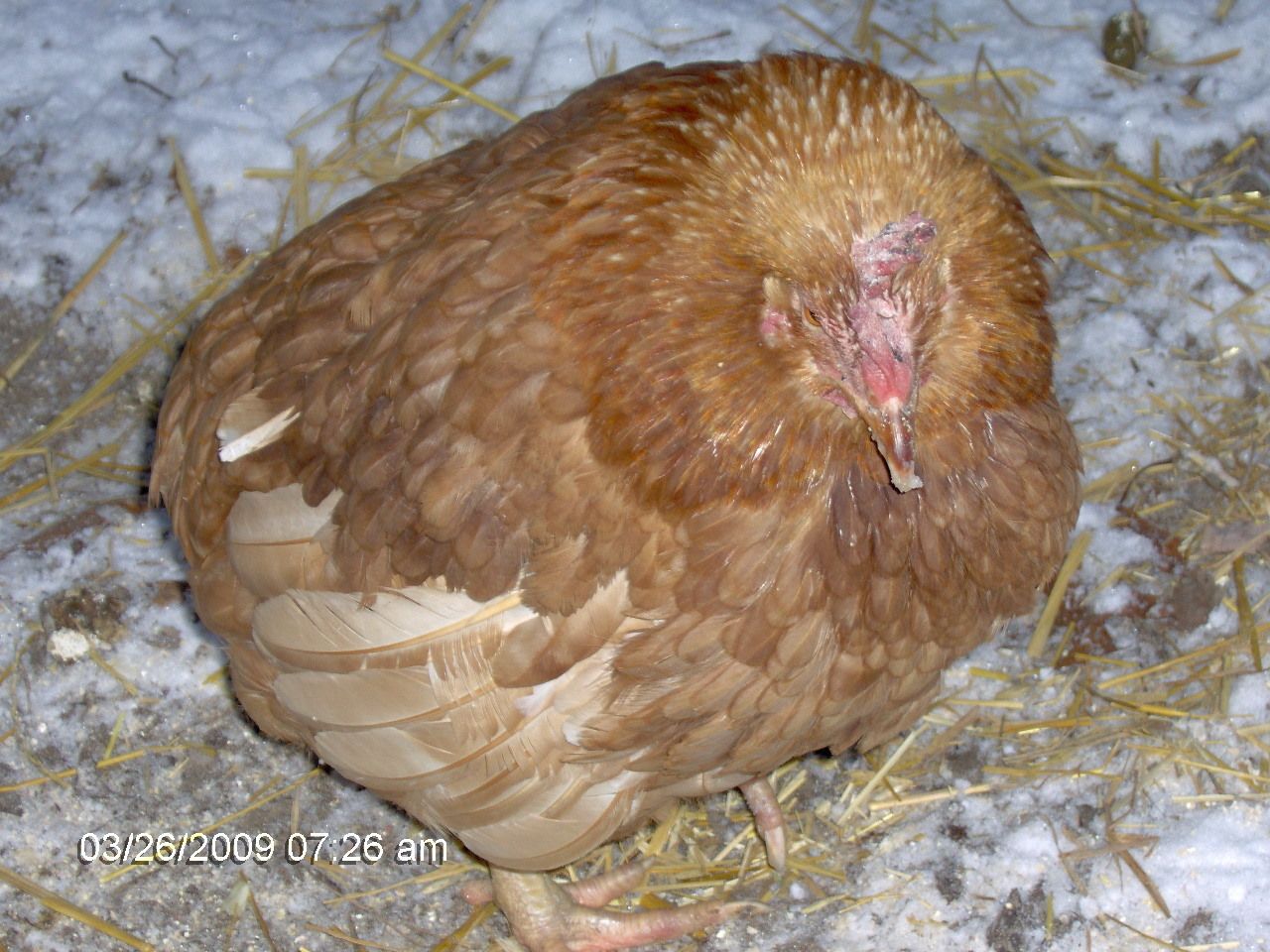 the top picture is how she stands all day.. and since we gave her more protien seems like her feathers have filled in more and shiny and healthier.. and that little bit of pink on her comb is new.. so not sure what to think, not that experience to know.