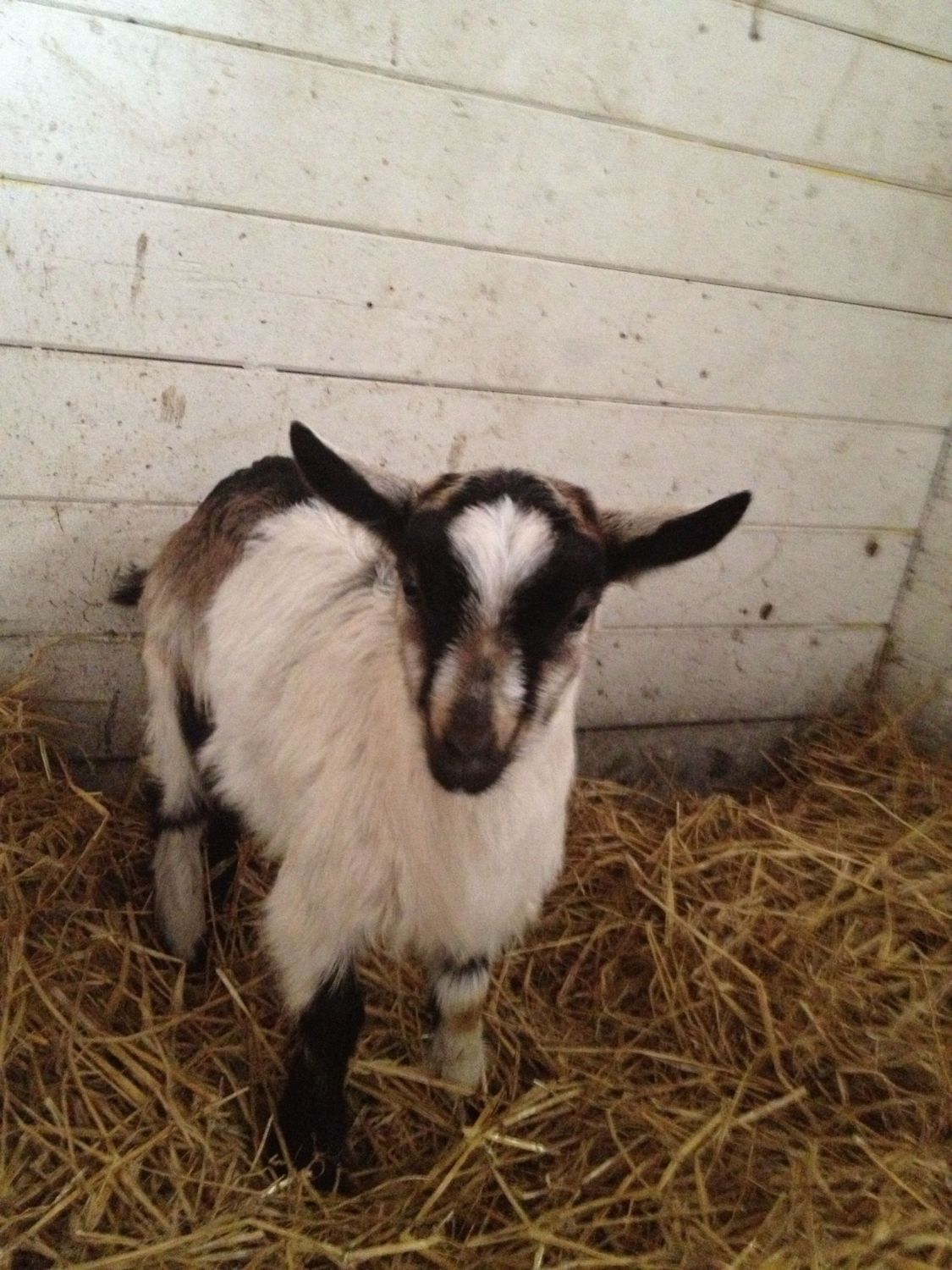 As promised, a picture of our new goat kid. Eliza is an 8 week old Alpine. She's slowly warming up to me, yells at me whenever I walk into the barn.