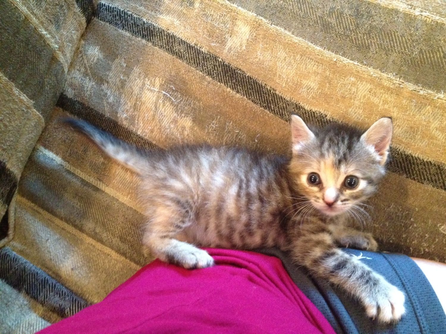An Aunt of mine knows I'm a sucker for all things adorable and thought with all the things I have to do as it is...why not take in an abandoned kitten as well? Sigh.... Her mother had 4 kittens and right before that 100 degree heat wave struck she moved 3 and left this one. I asked her how LONG she left it there because we all know momma's move their babies. She said it'd been about 4 hours so I grudgingly accepted. Gia was already underweight as a newborn at only 2oz(normally they are 3-4oz) and was dehydrated. Anyway, I didn't expect her to even make it through the night but she did and each day got stronger. She's a typical ball of energized kitten fluff now. I can't believe it's been almost 6 weeks! We have a neutered male cat who just turned a year old that has taken her in as well! It's the craziest thing. He cleans her, plays with her and reprimands her just like a mom would. Max is an incredibly sweet cat though so I'm not surprised really.GO KITTY! Sounds sweet...how did you come about a newborn kitten? Kudos on raising it up! That had to be tough!